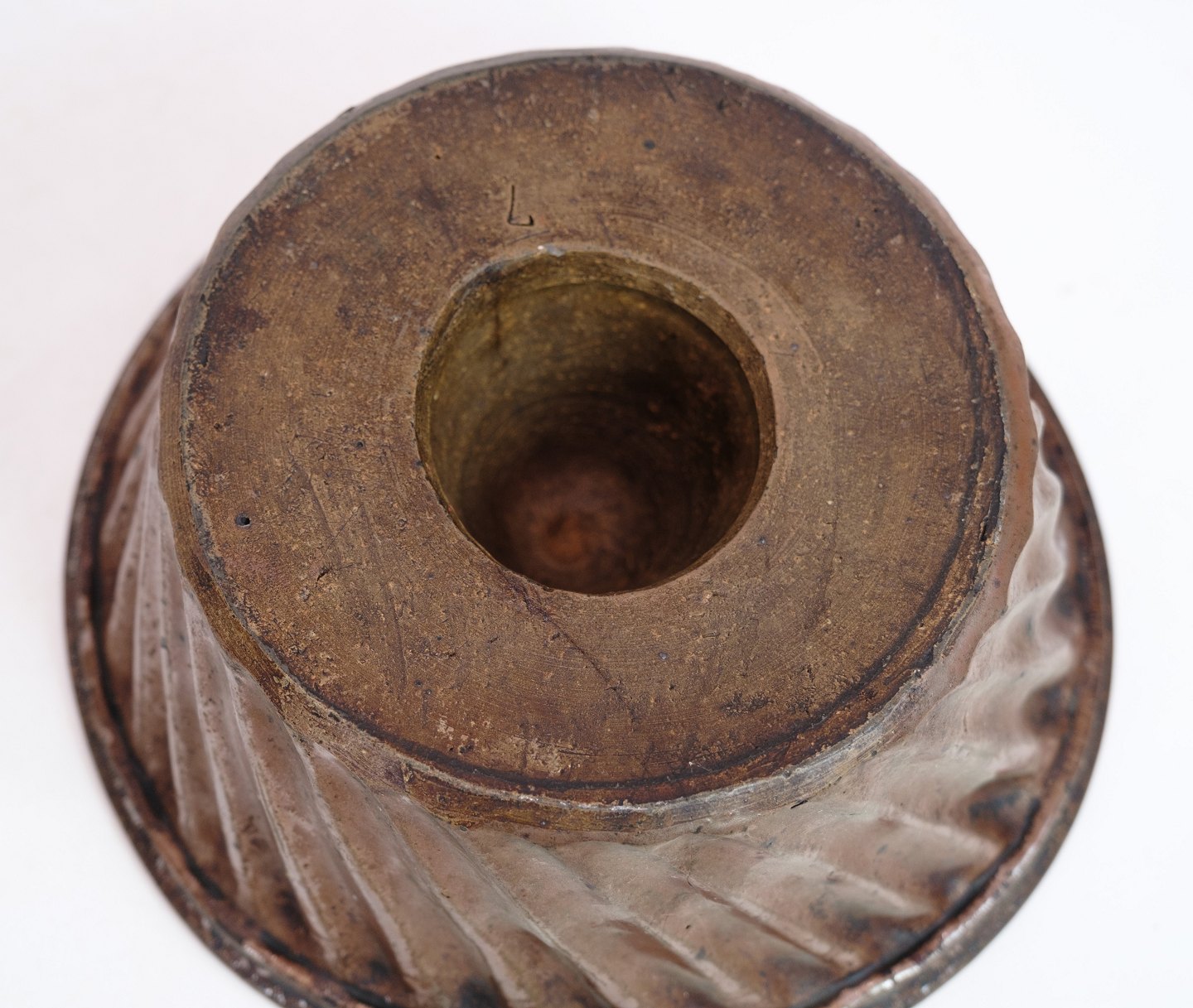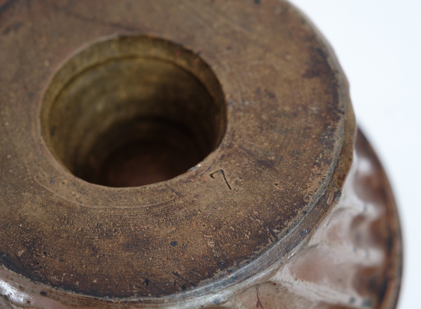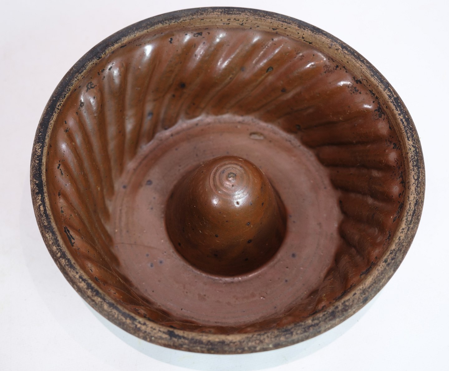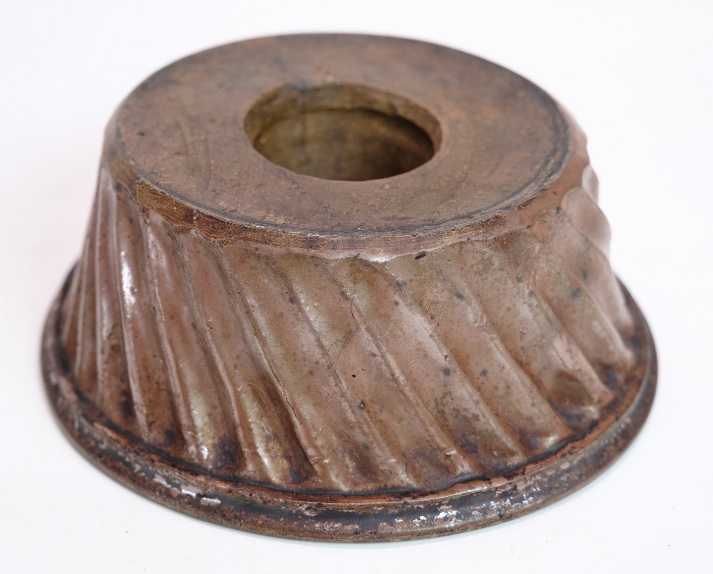 Buddingeforme af lertøj i brunlige farver fra omkring år 1930'erne.