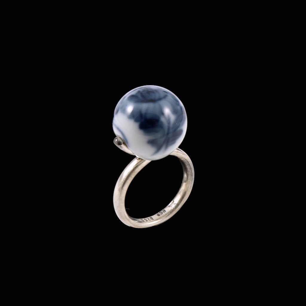 Royal Copenhagen. Ring i Sterling sølv med porcelæn.