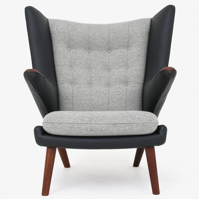 AP 19 - Nybetrukket Bamsestol i Hallingdal 65-uld (farve 116) samt sort Savanne-læder (semi-anilin-læder). KLASSIK tilbyder Bamsestolen i tekstil og/eller læder efter eget valg. Kontakt os venligst for mere information.