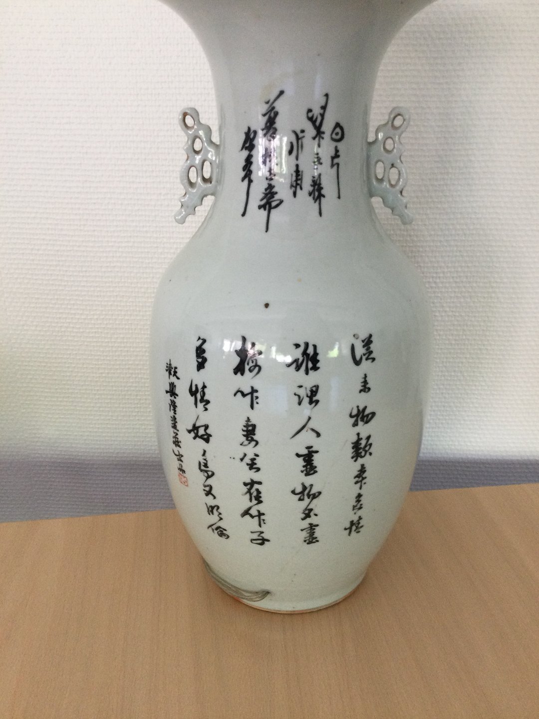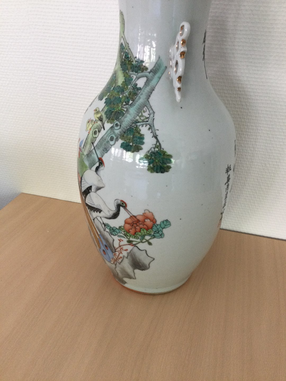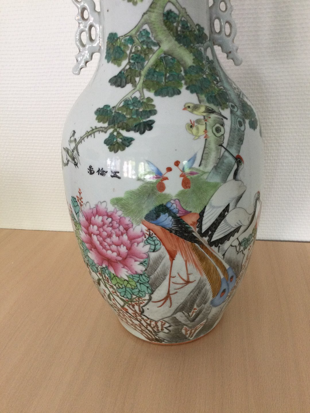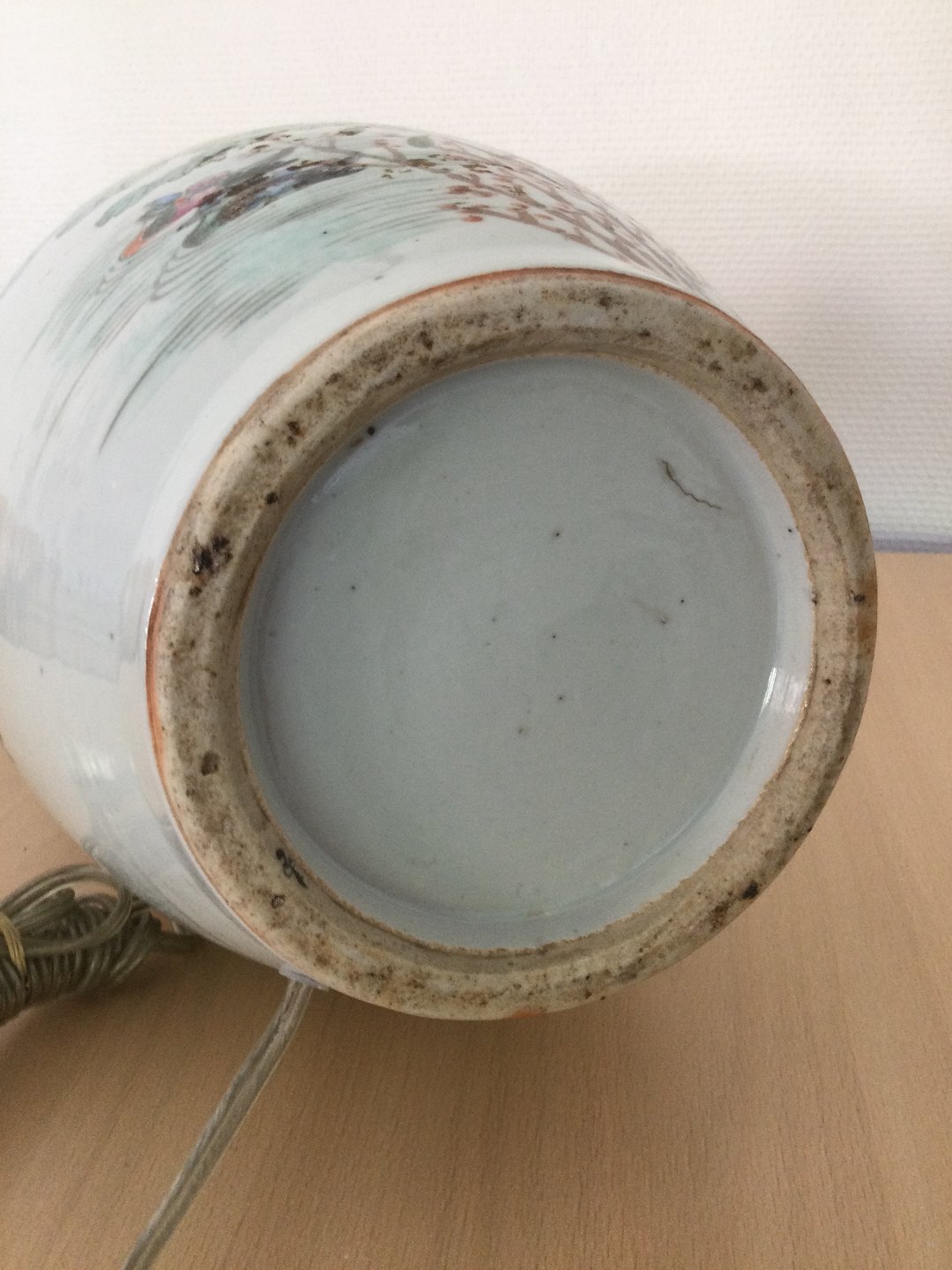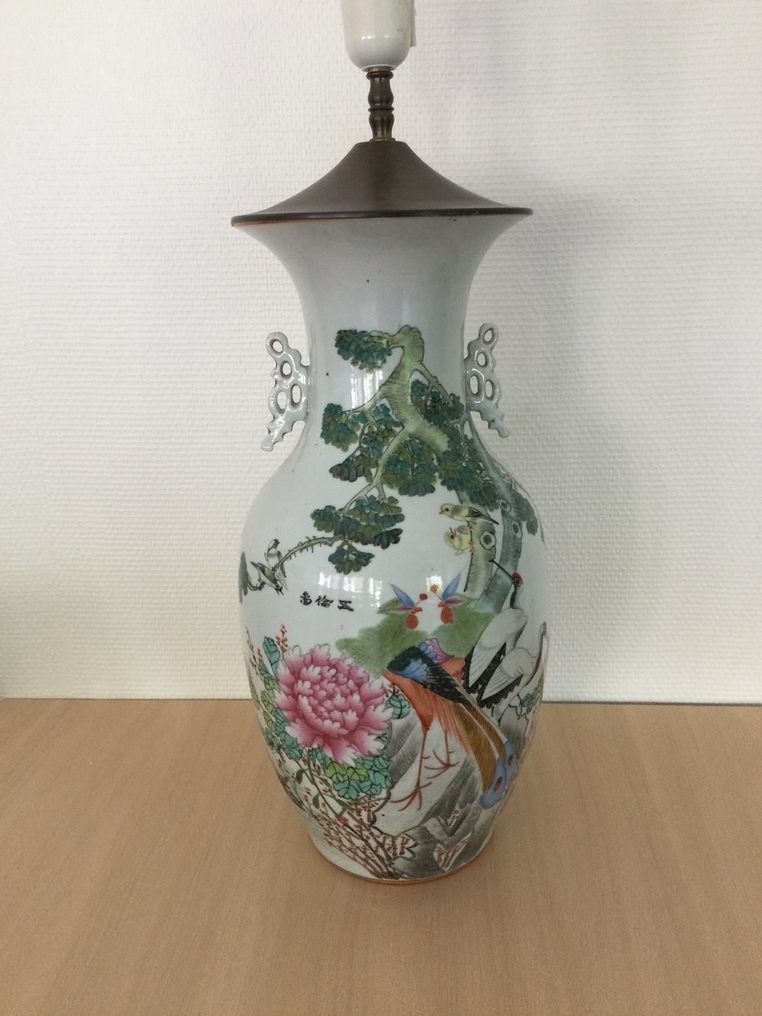 Stor kinesisk porcelæns vase omlavet til bordlampe.