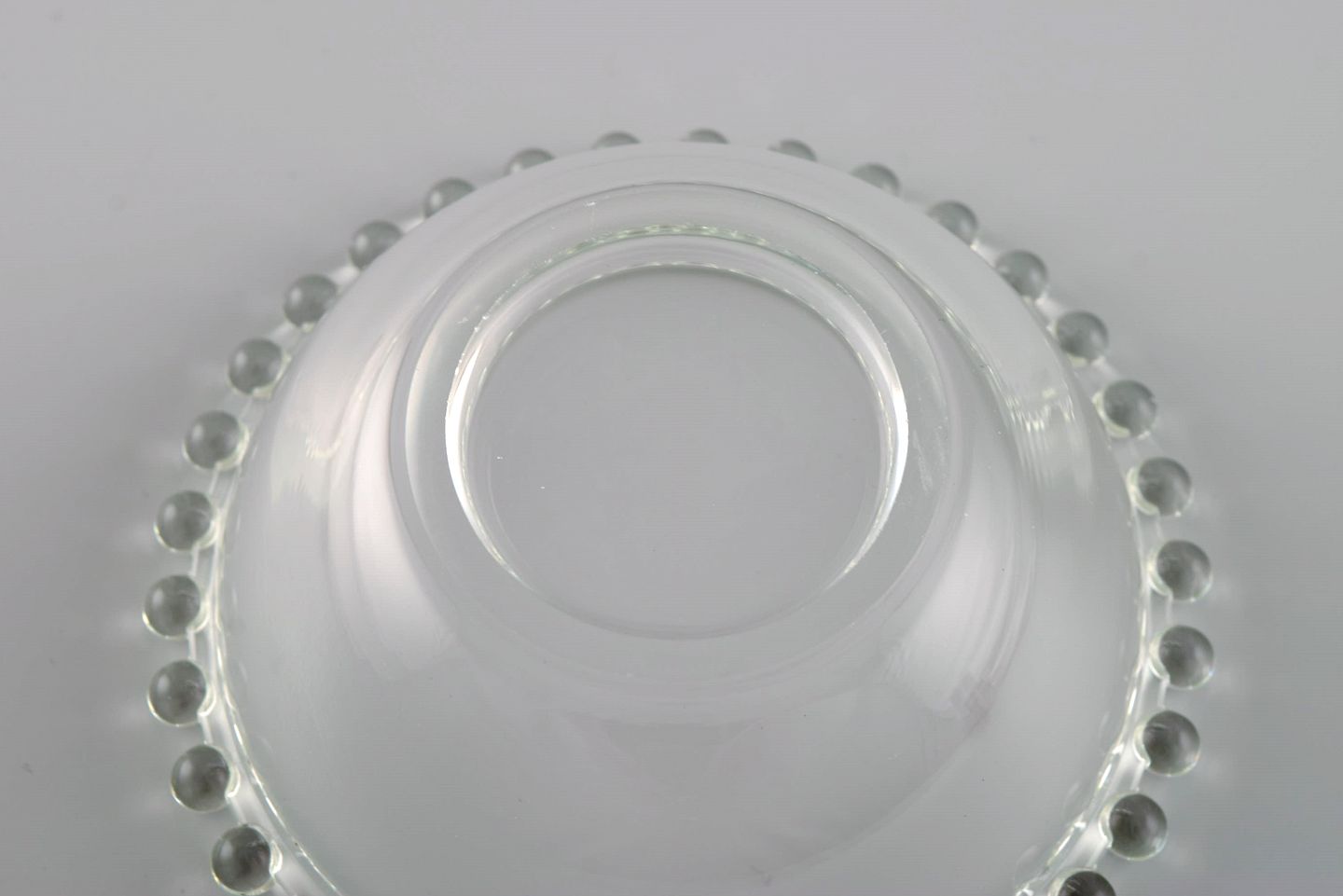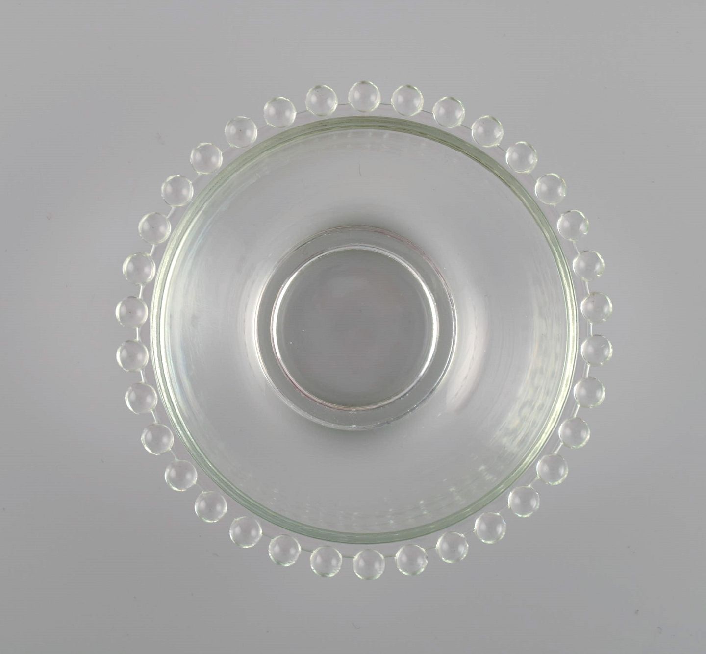 Seks skylleskåle i klart kunstglas. Frankrig, Midt 1900-tallet.