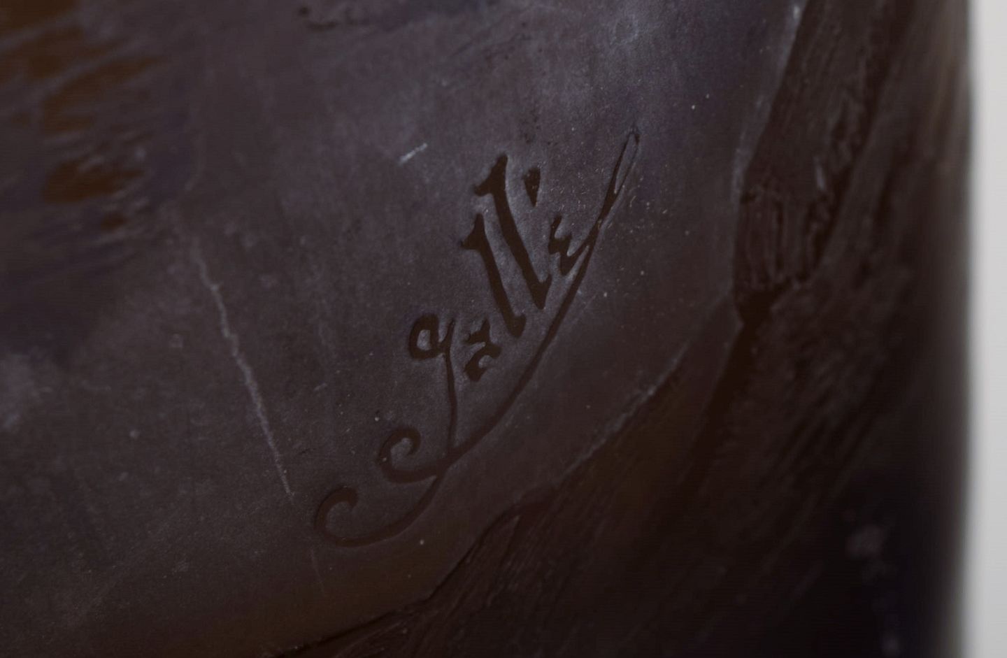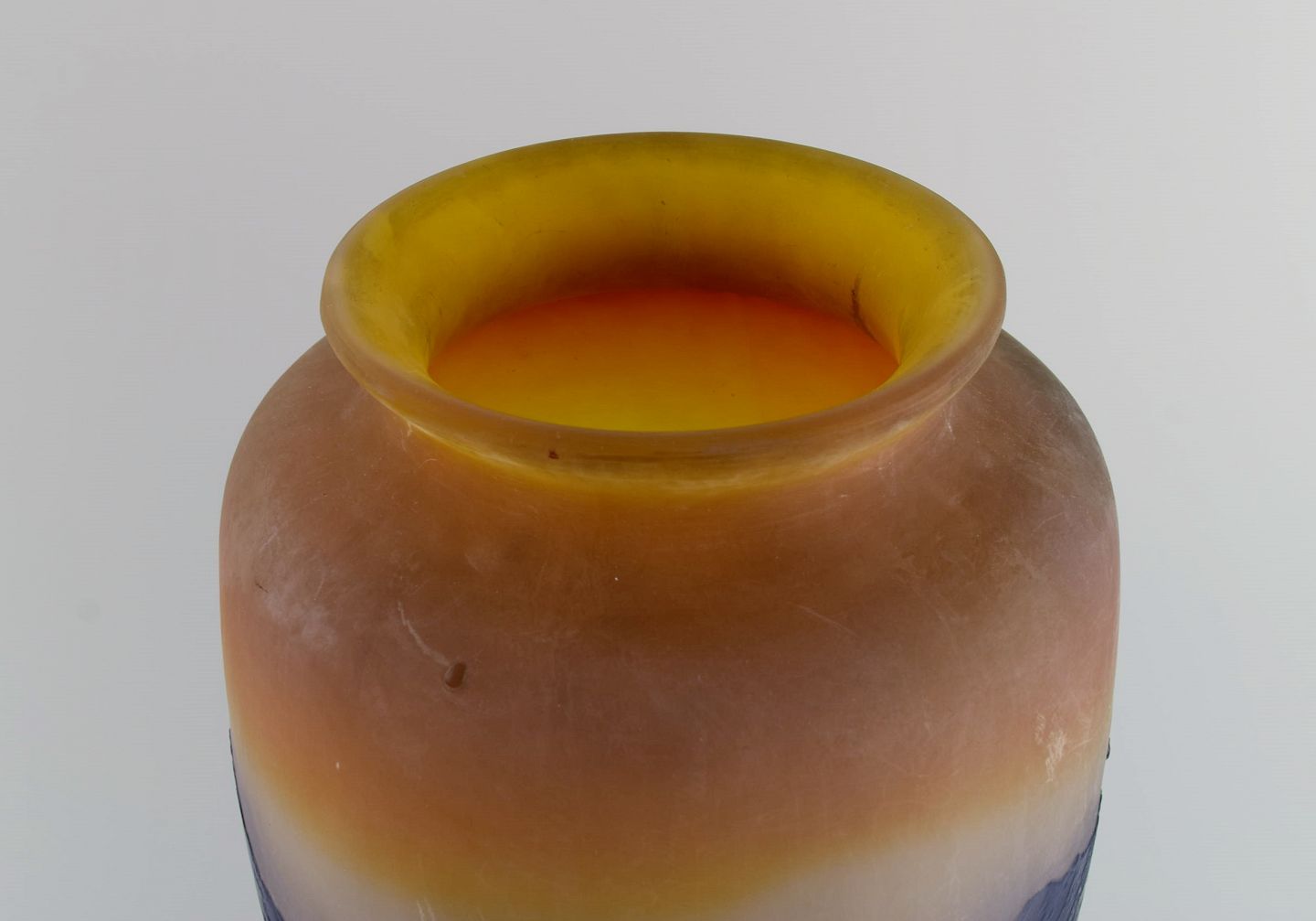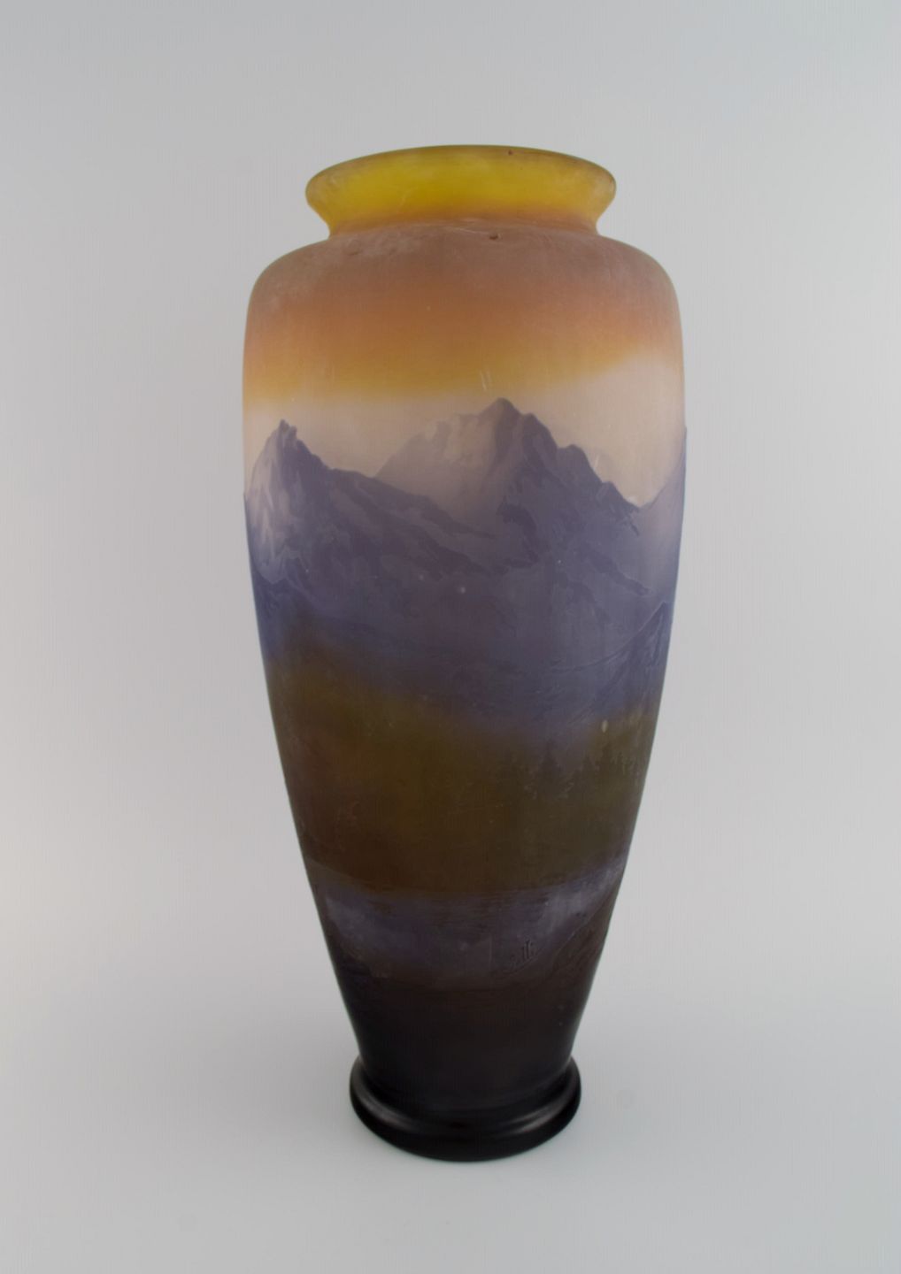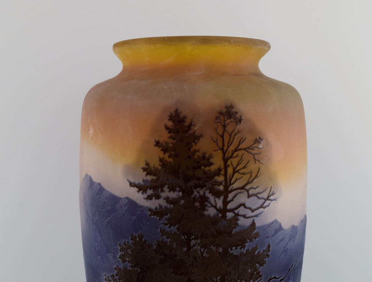 Émile Gallé (1846-1904), Frankrig. Meget stor og sjælden "Vosges" vase i mundblæst cameo kunstglas. Bjerglandskab med træer i relief. Ca. 1900.