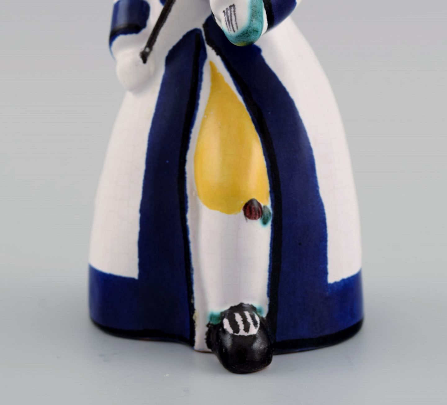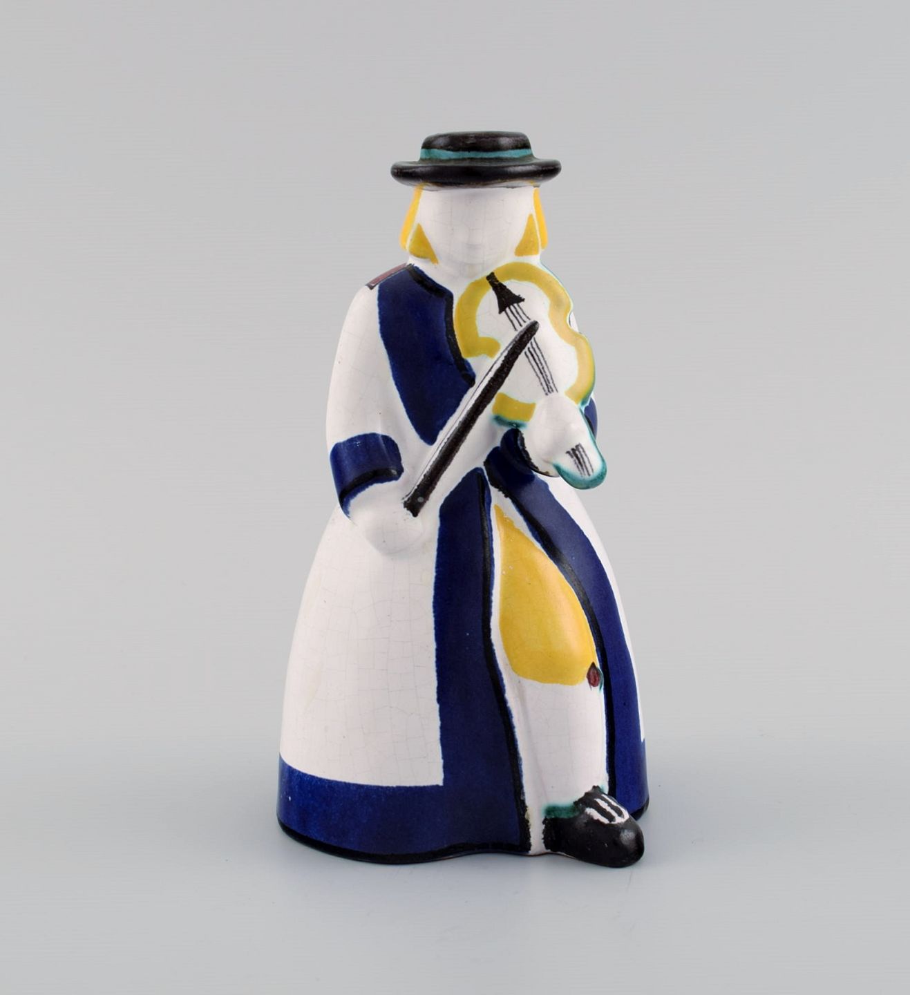Ursula Printz (1920-1993) for Gustavsberg Studiohand. Lysestage / figur i glaseret keramik. Spillemand. Midt 1900-tallet.