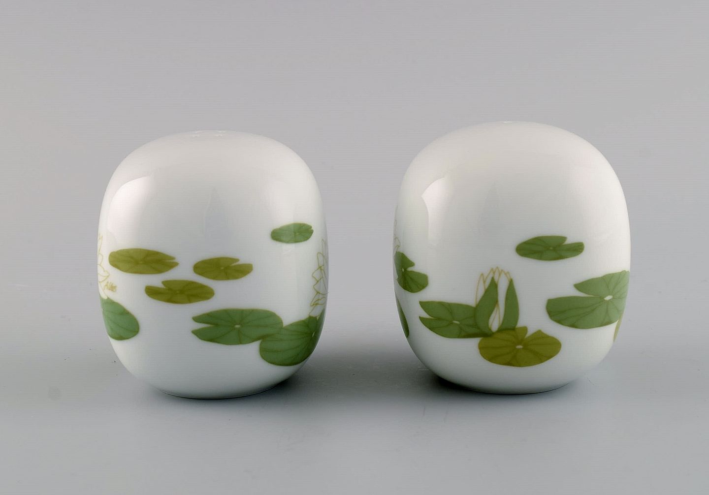 Timo Sarpaneva for Rosenthal. Sjældent salt / peber sæt i porcelæn dekoreret med åkander. 1970/80'erne.