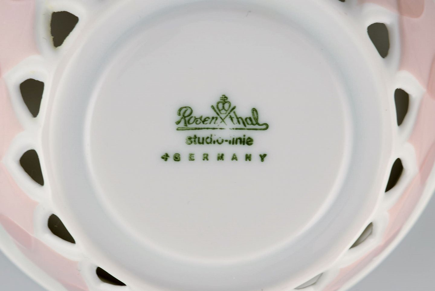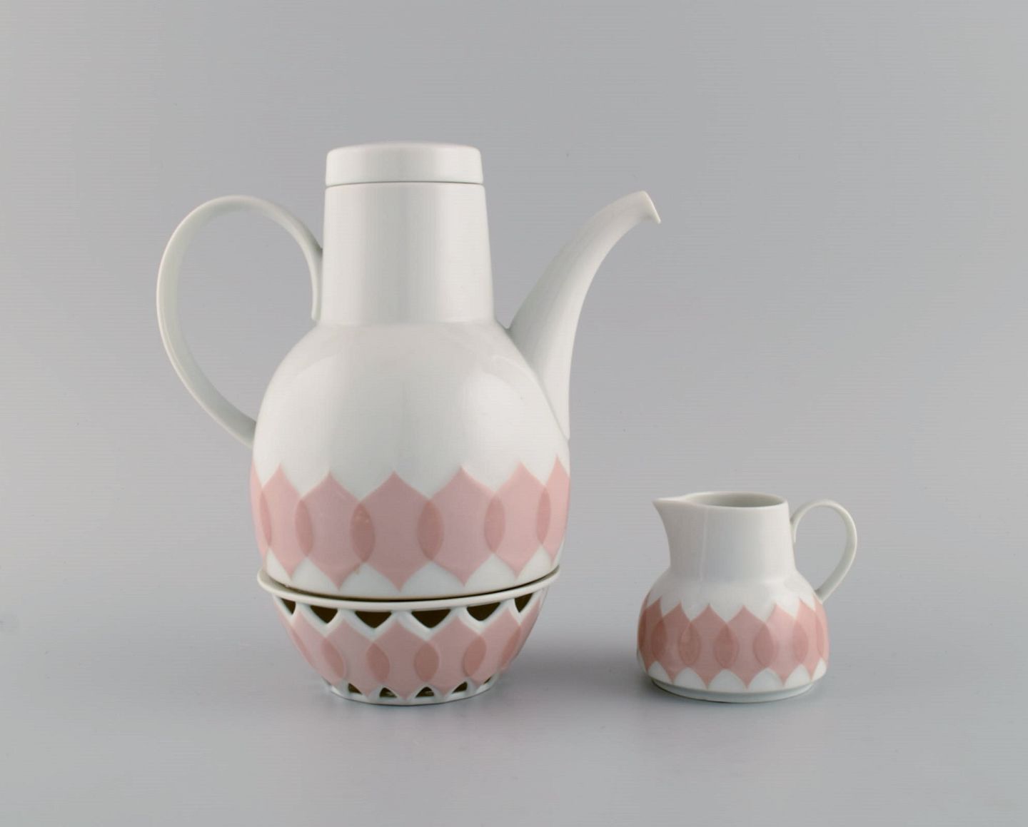Bjørn Wiinblad for Rosenthal. Lotus porcelænsservice. Kaffekande med varmer til fyrfadslys og flødekande dekoreret med lyserøde lotusblade. 1980'erne.