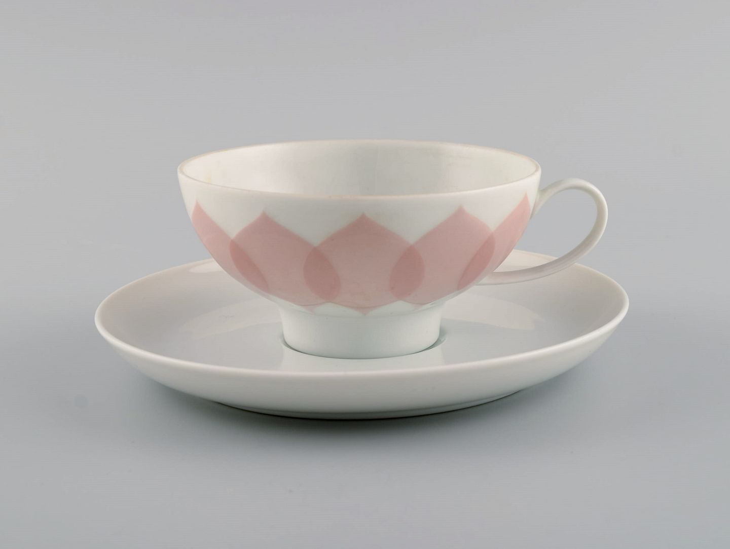 Bjørn Wiinblad for Rosenthal. Lotus porcelænsservice. 9 tekopper med underkopper dekoreret med lyserøde lotusblade. 1980'erne.