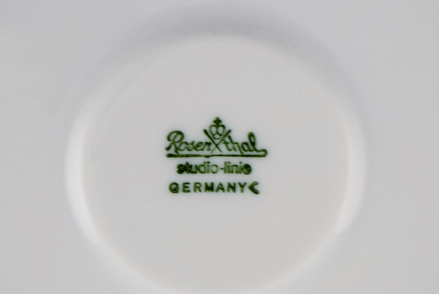 Bjørn Wiinblad for Rosenthal. Lotus porcelain service. 9 teacups with saucers decorated with pink lotus leaves. 1980s.