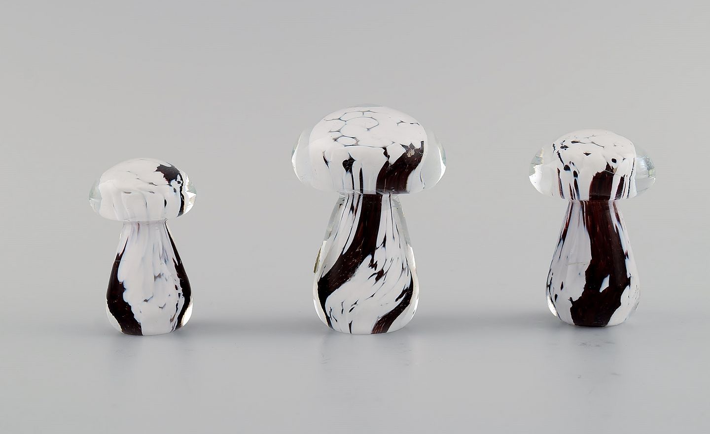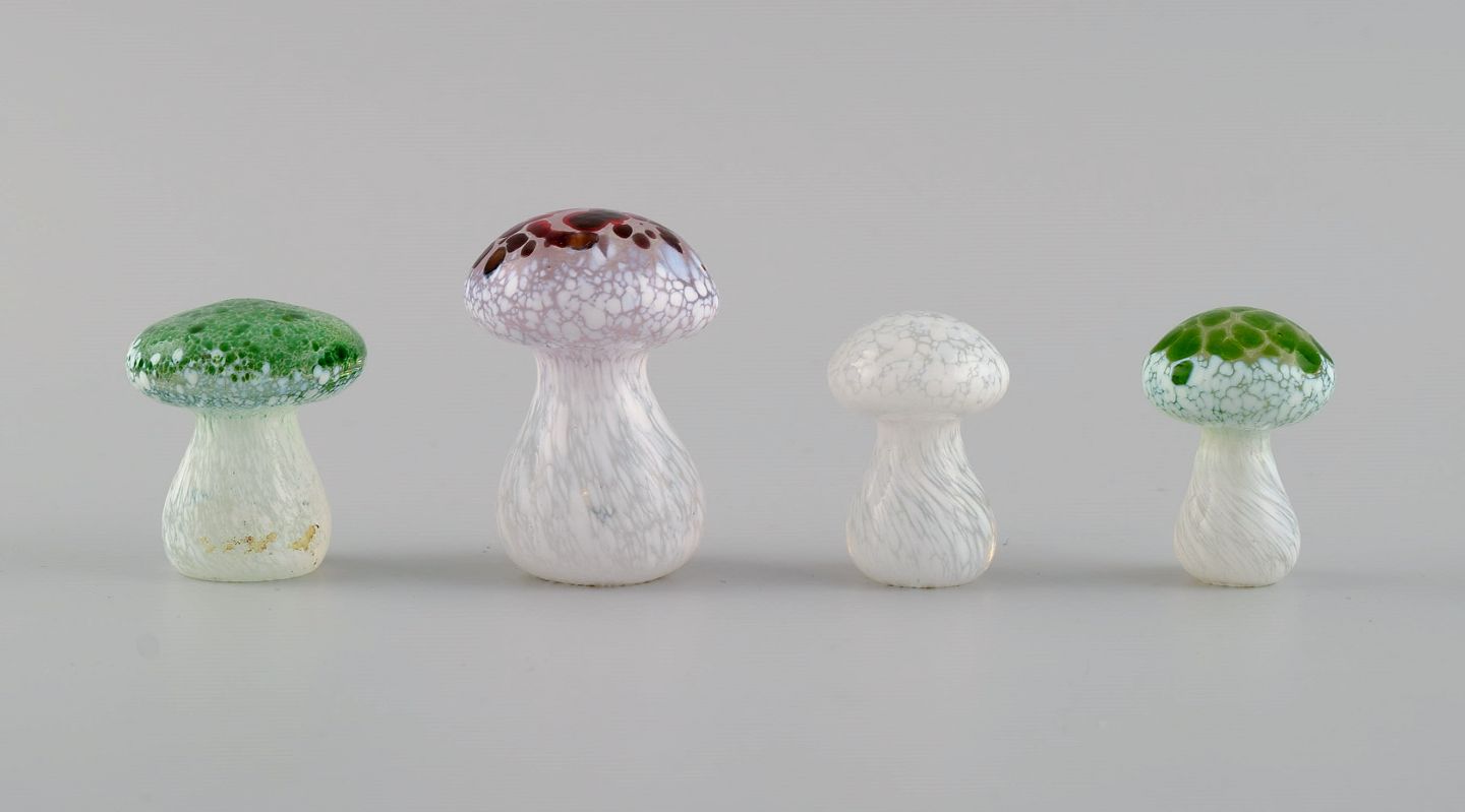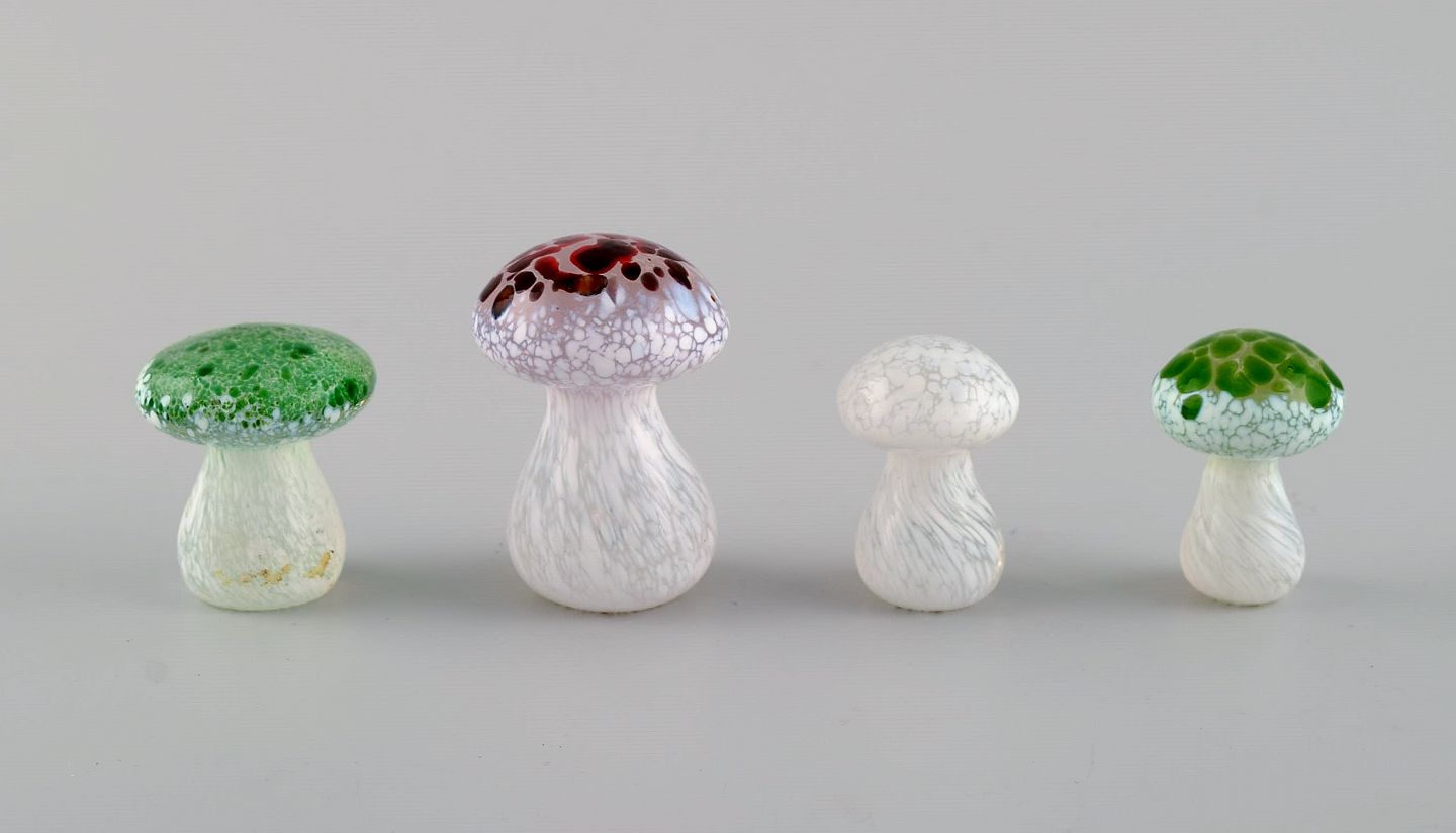 Smålandshyttan, Sverige. Otte svampe i mundblæst kunstglas. 1960/70'erne.