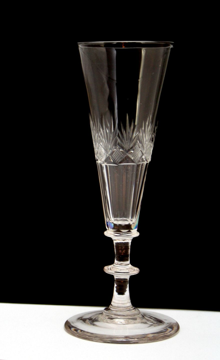 Krystal champagnefløjter, Anglais form facetslebet med krydsslibninger. Højde 17,5 cm. Diameter 6 cm. Rundsleben i bund. Fremstår med aldersrelateret præg, ridser og luftbobler. Pris: 400 kr. stk. Lager: 5