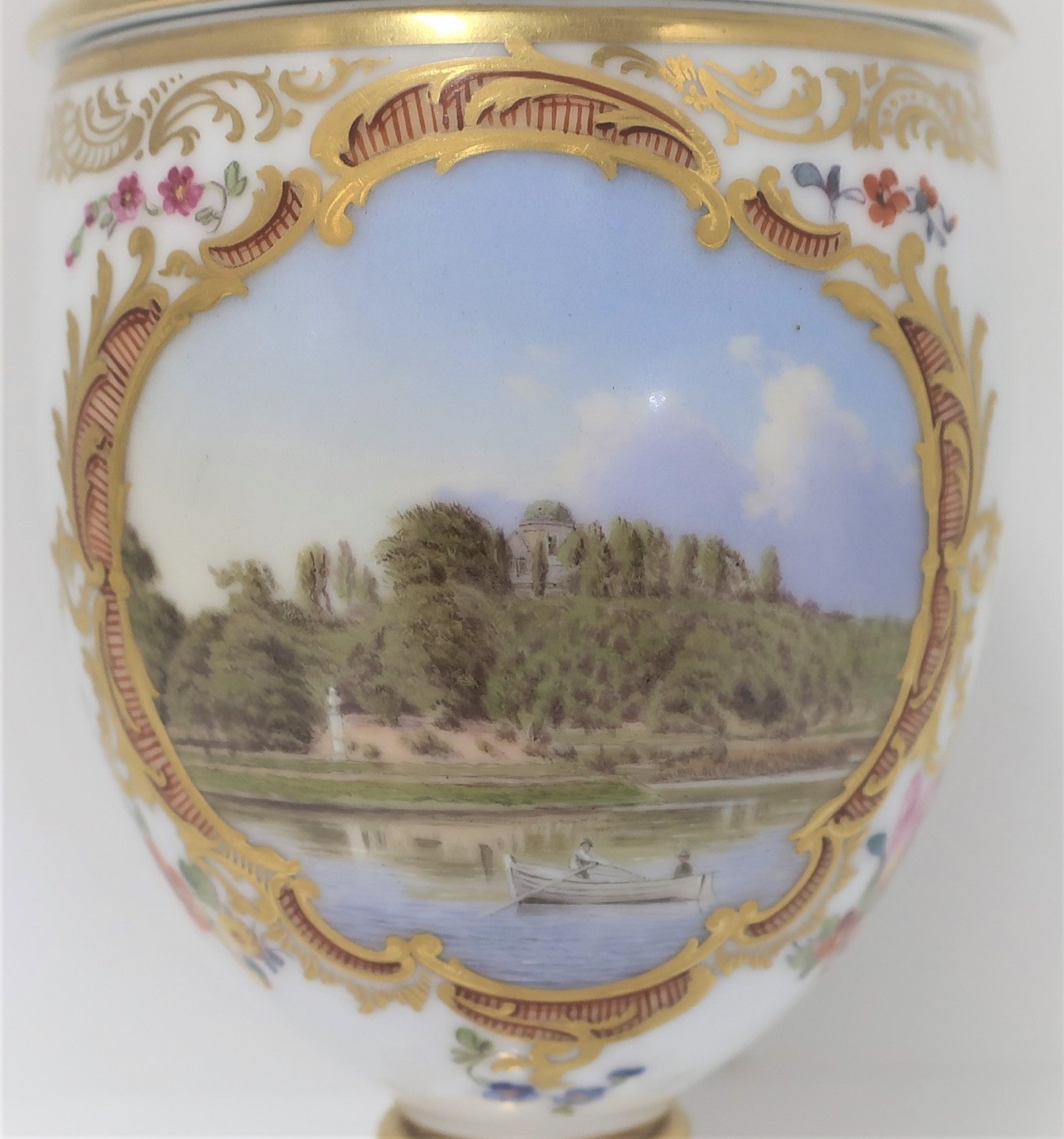 Royal Copenhagen. Porcelæns ægvase med putti. Motiv : Botanisk Have. Højde 27 cm. Produceret 1894-1900. (1 sortering)