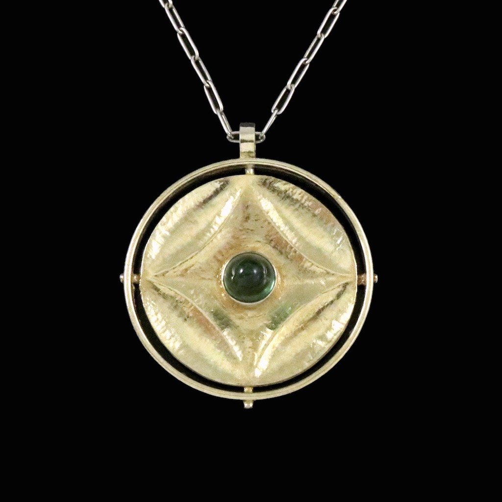 Bent Exner (1932-2006). Fire-gilded Sterling Silver Pendant Necklace with Tourmaline.