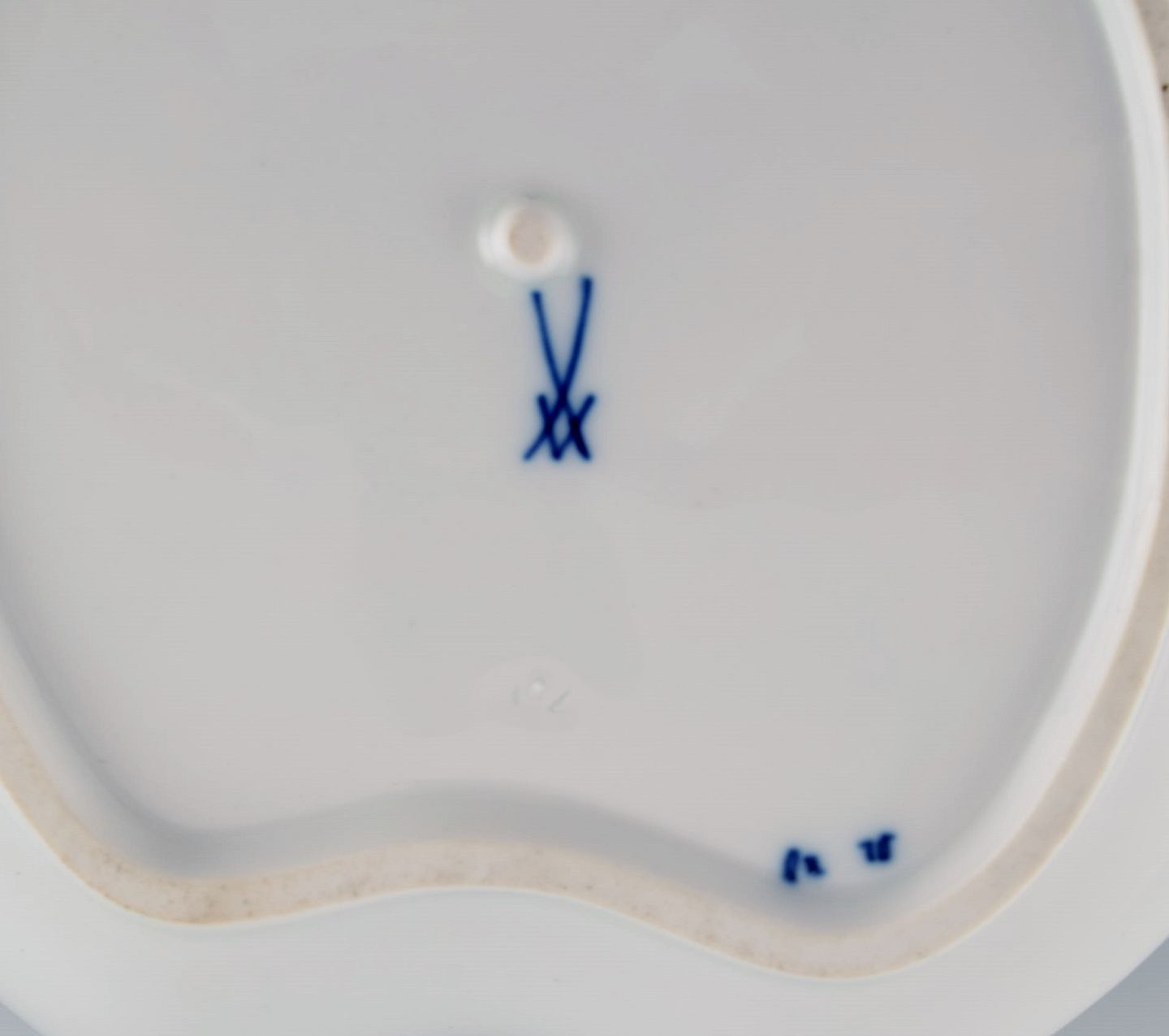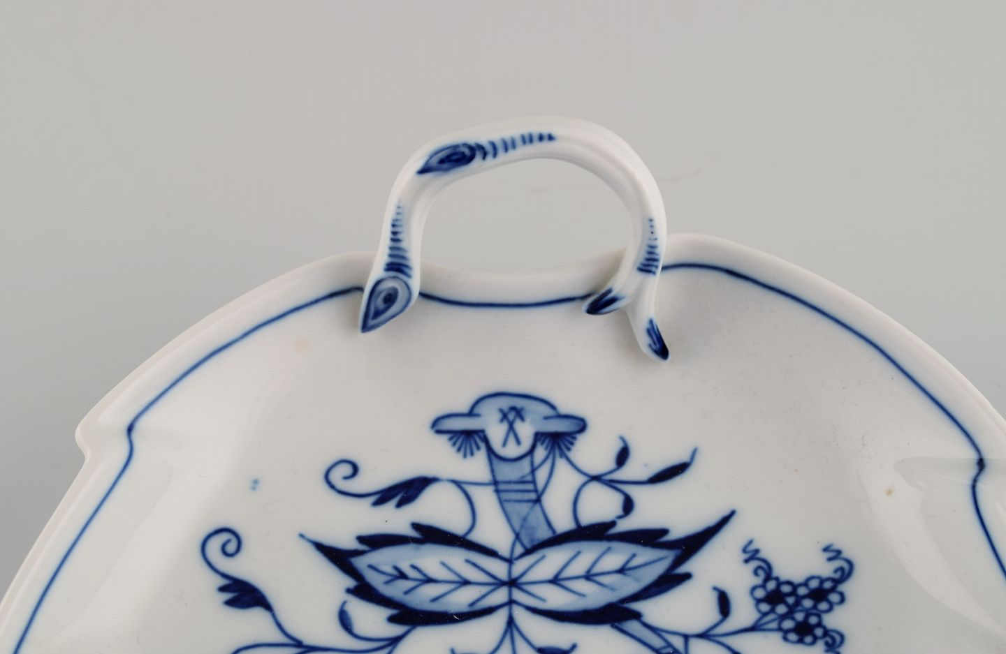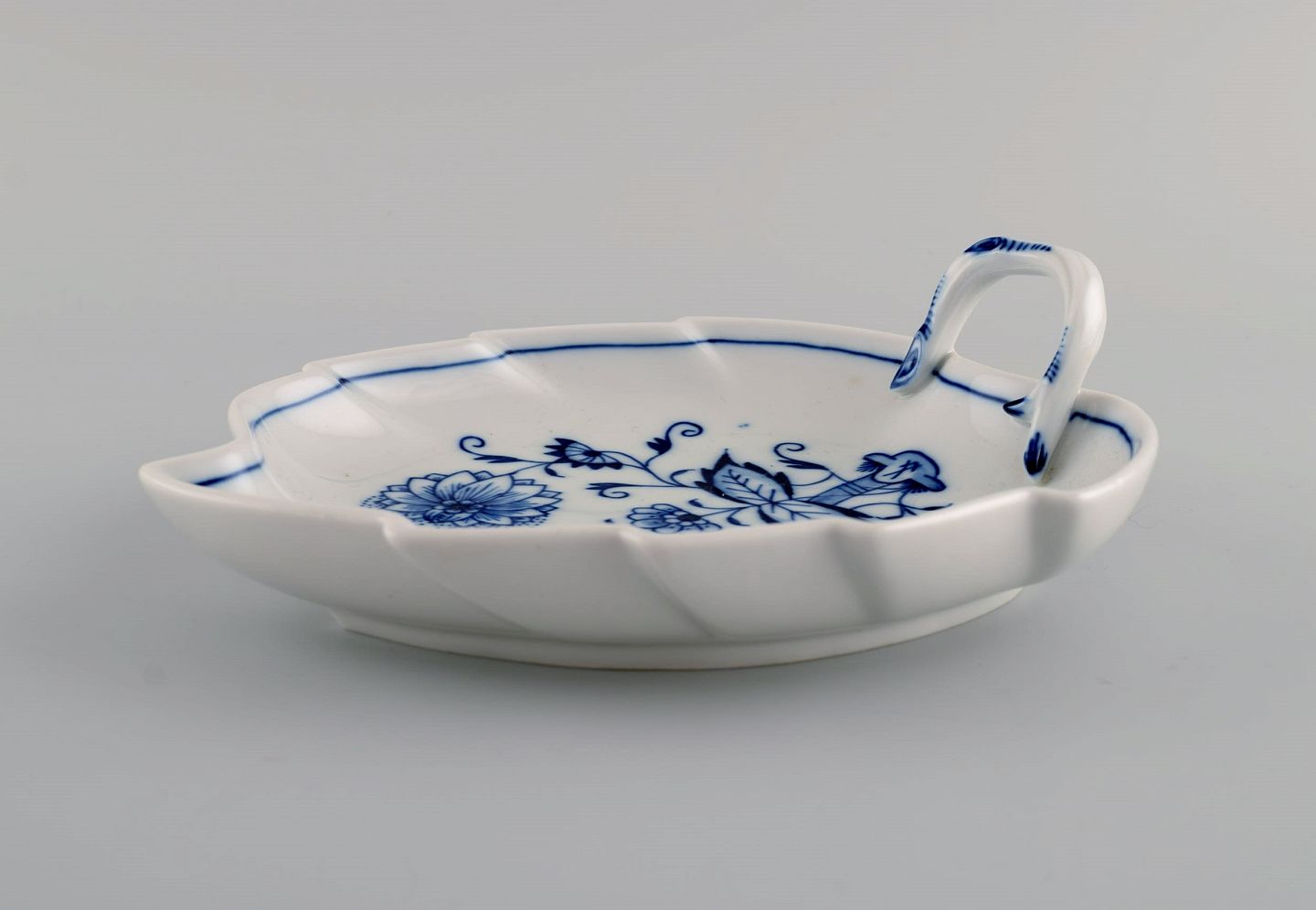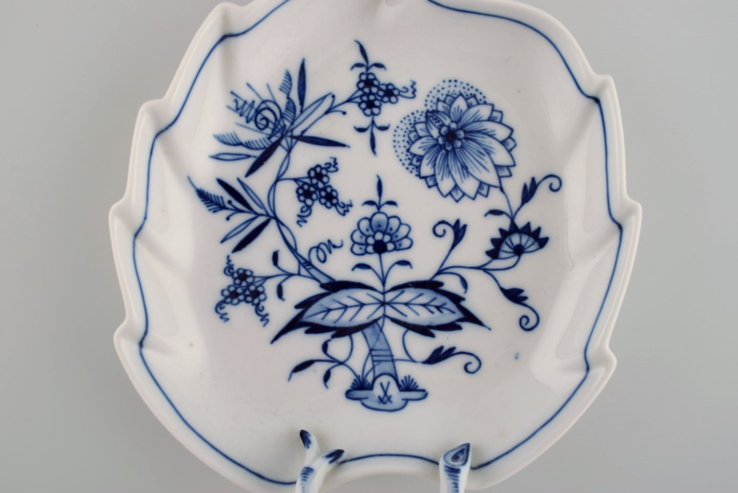 Bladformet Meissen Løgmønstret asiet i håndmalet porcelæn. Tidligt 1900-tallet.