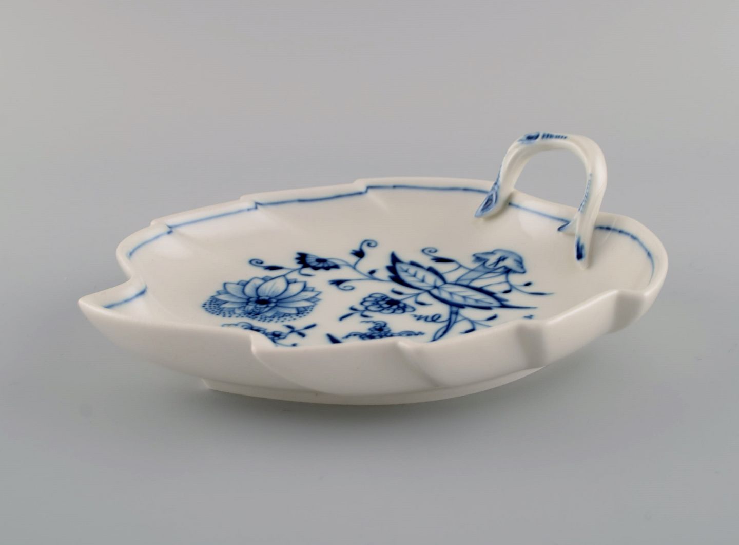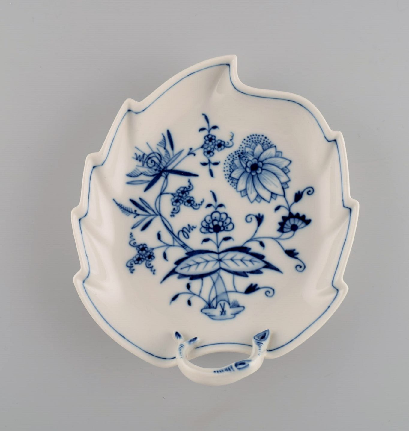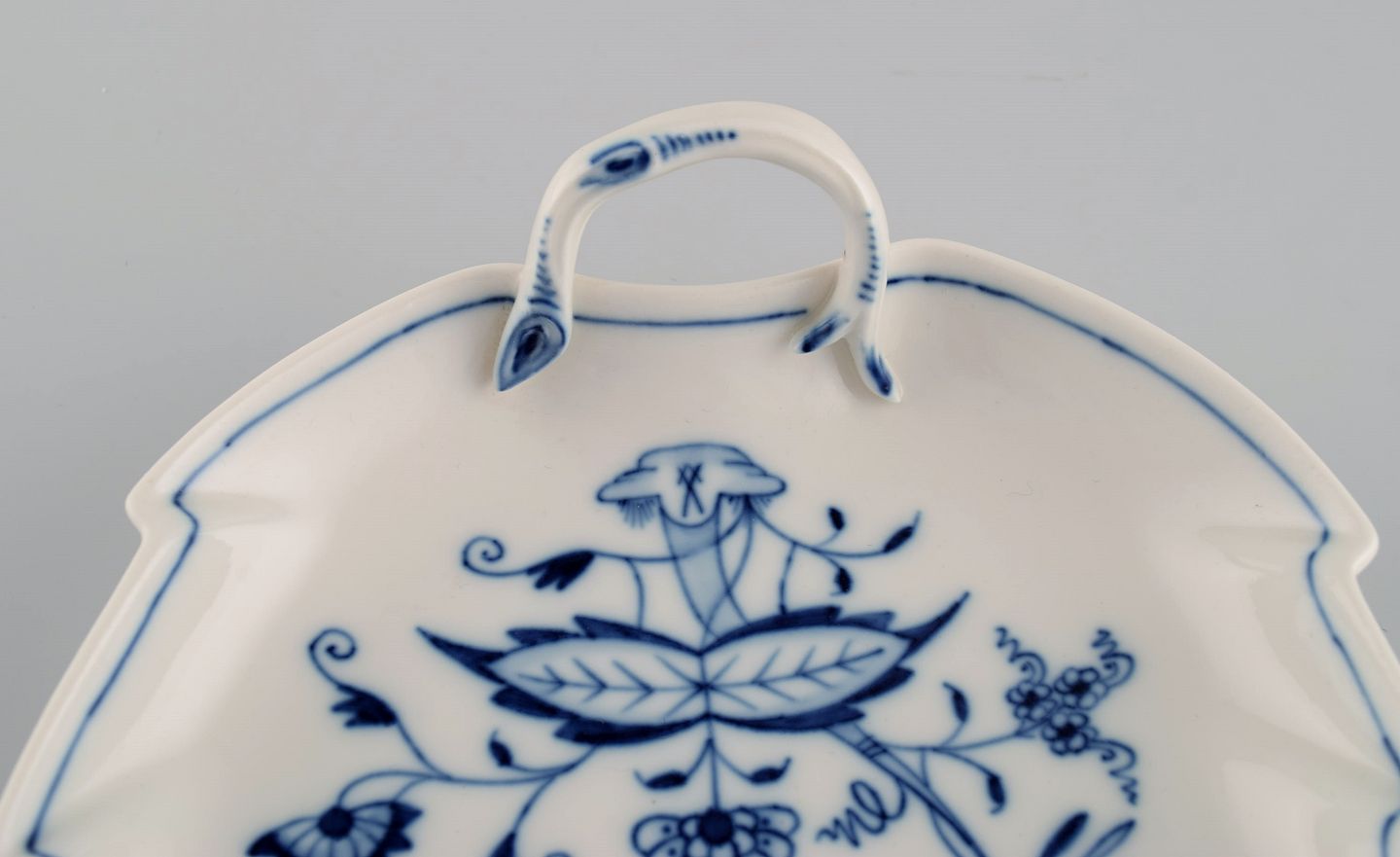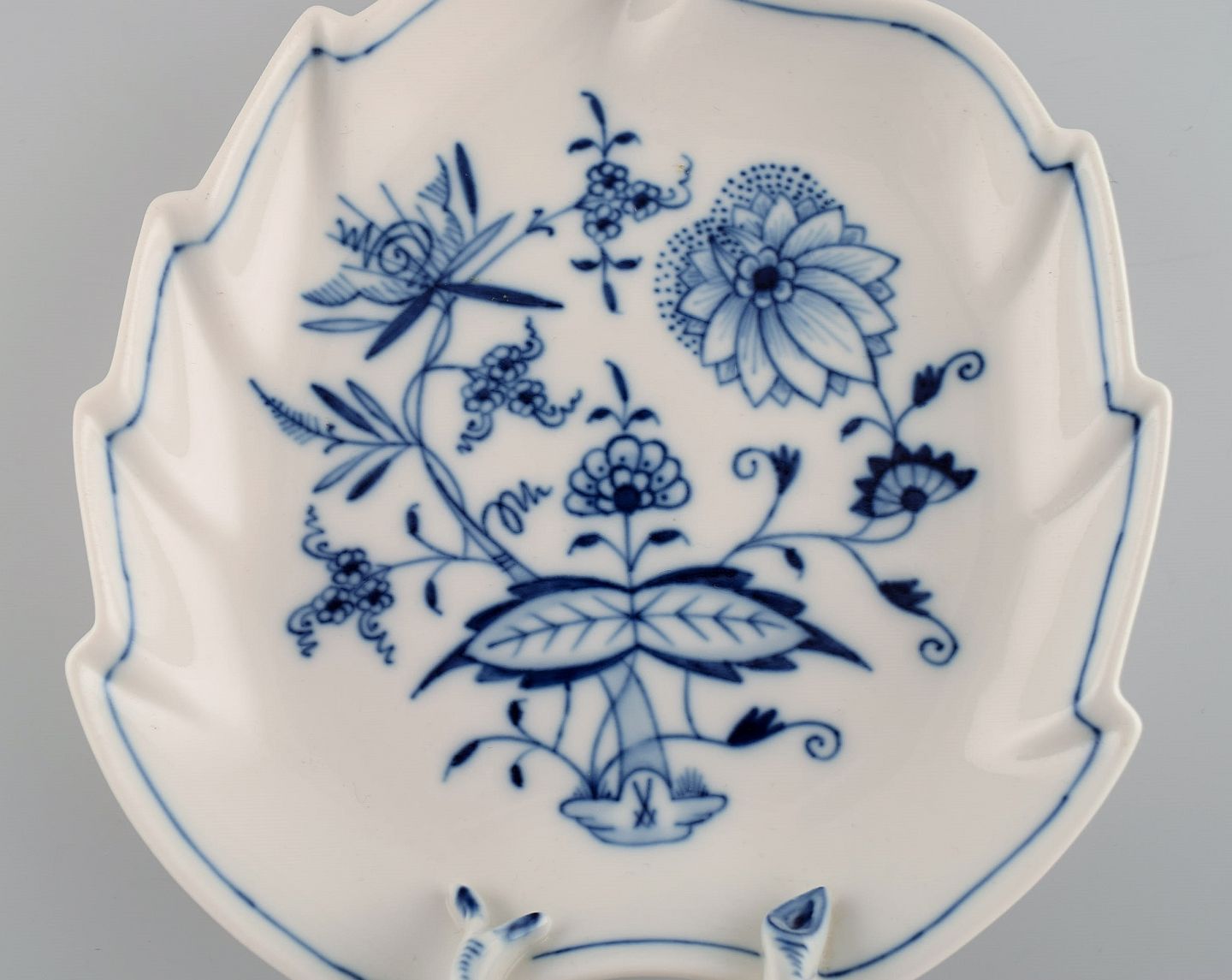 Bladformet Meissen Løgmønstret asiet i håndmalet porcelæn. Tidligt 1900-tallet.