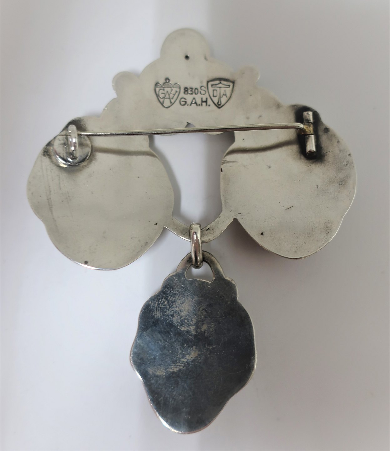 GAH. (Georg Albert Harald Halling), København. Jugend broche med rav. Sølv (830). Bredde 6,5 cm.