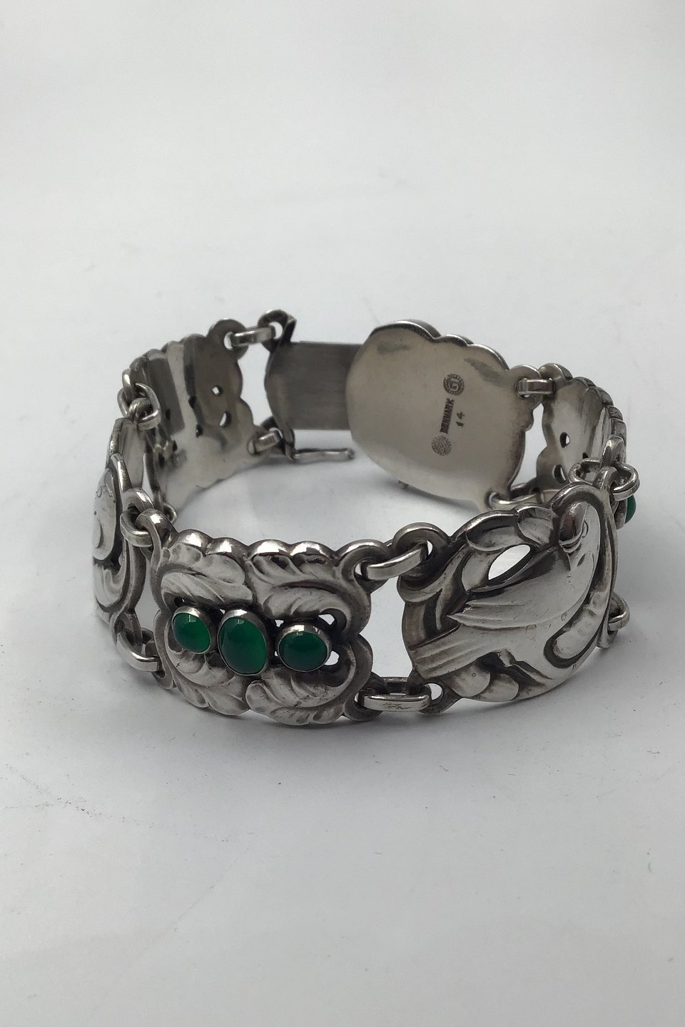 Georg Jensen Sølv Armlænke No. 14 Grønne Sten (1915-1930)