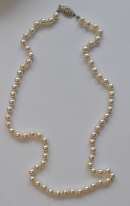 Perle halskæde med forsølvet lås, 20. årh. Længde.: 60 cm.