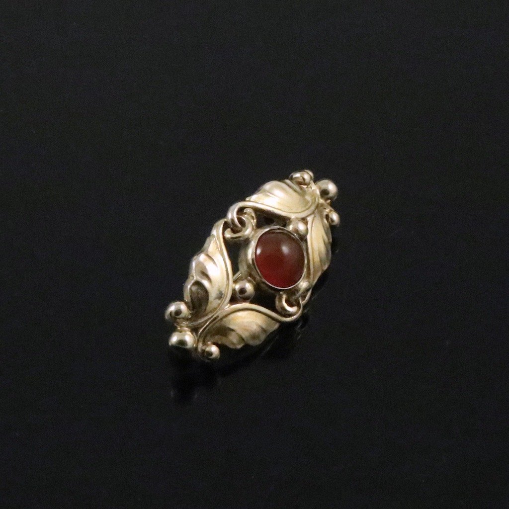 Georg Jensen. Broche i forgyldt sølv med karneol #224.