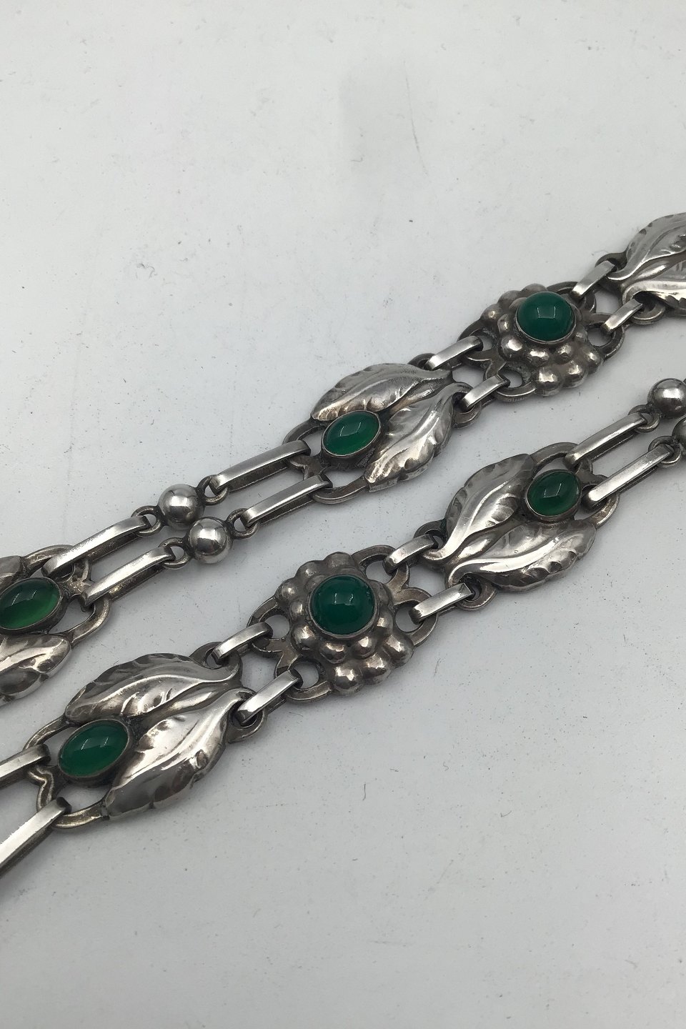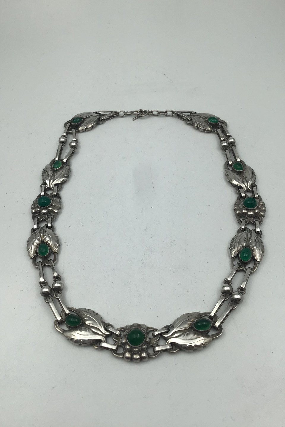 Georg Jensen Sølv Halskæde No. 1 Grønne Sten (1915-1927) Måler 42 cm (16.53 inch) Vægt 44.7 gr (1.58 oz)