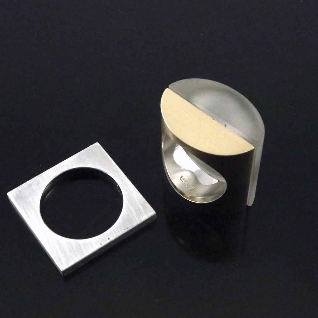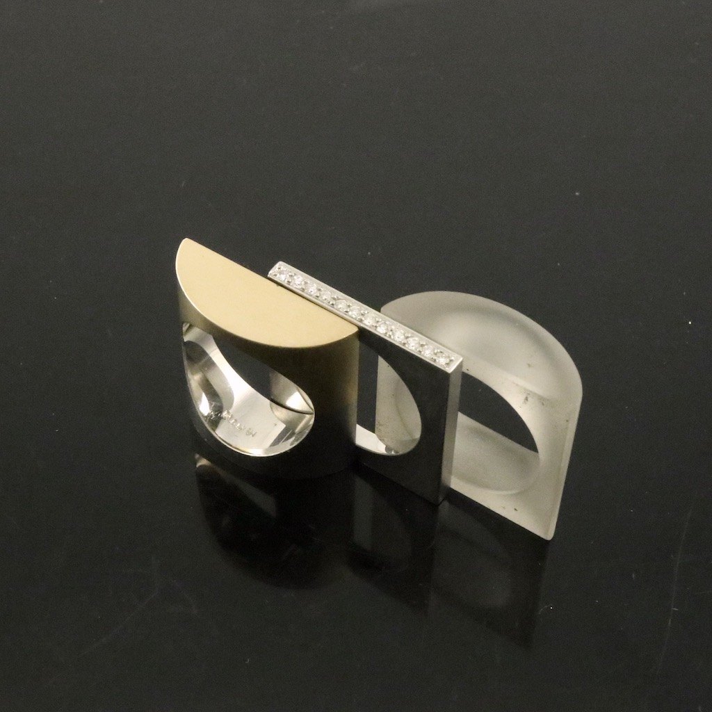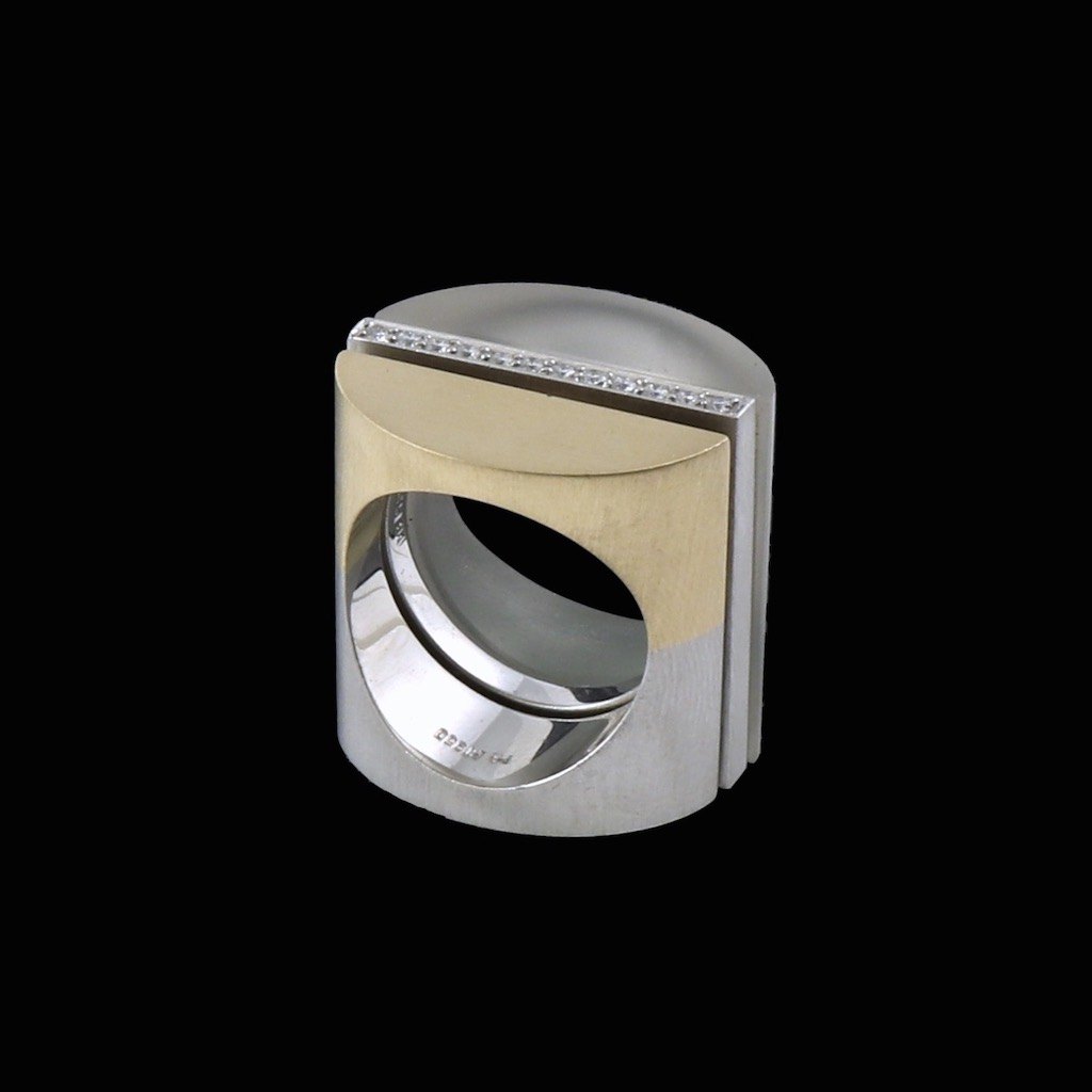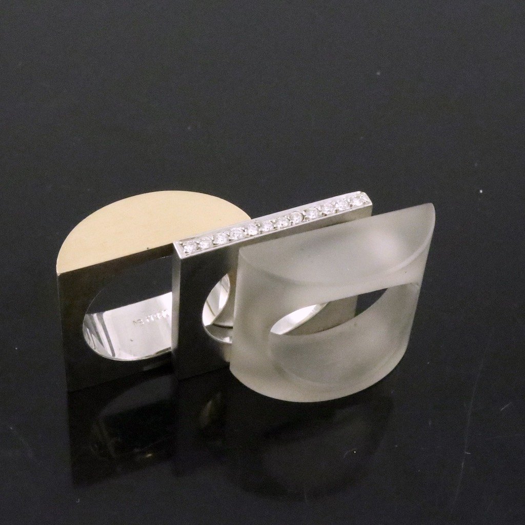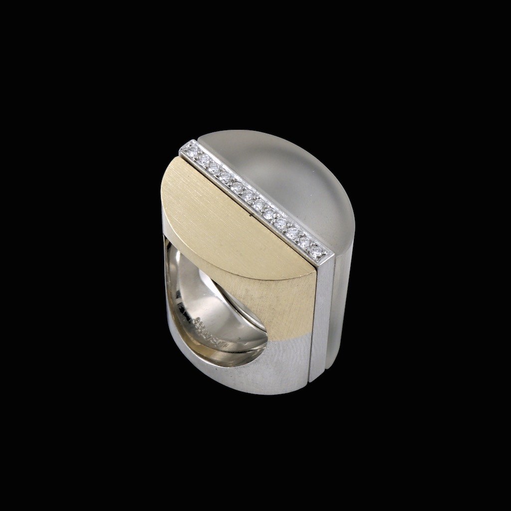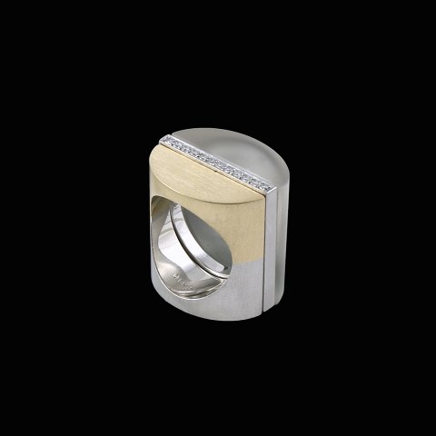 Tredelt Platinring med 18k guld, plexiglas og diamanter.