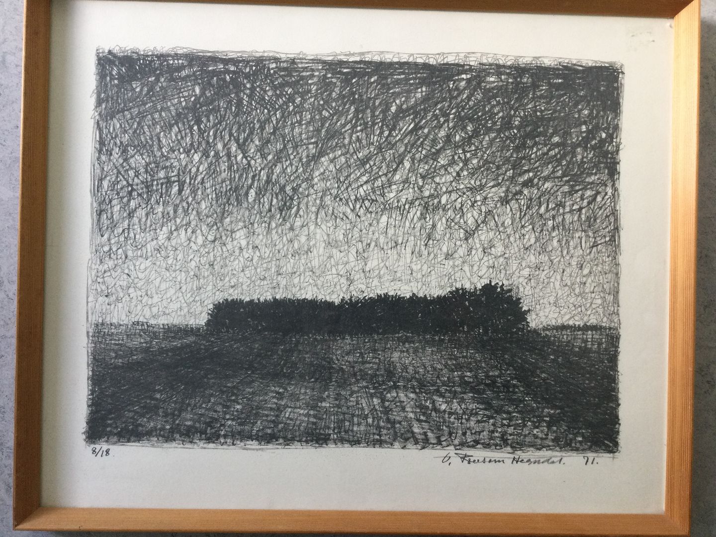 Litografi af Valdemar Foersom Hegndal - Skovbryn, skumring 1971.