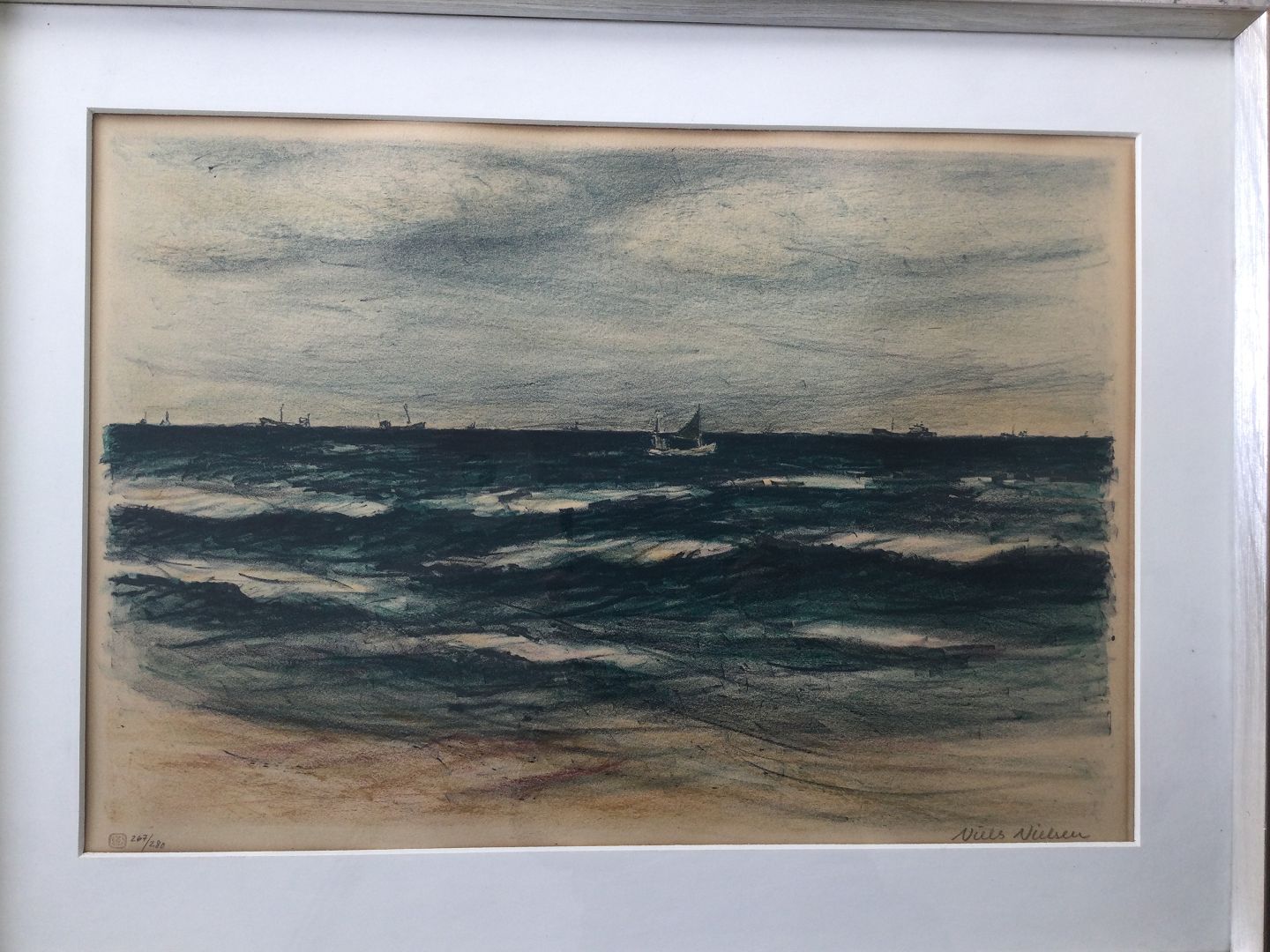 Litografi af Niels Nielsen - Skibe på vandet.