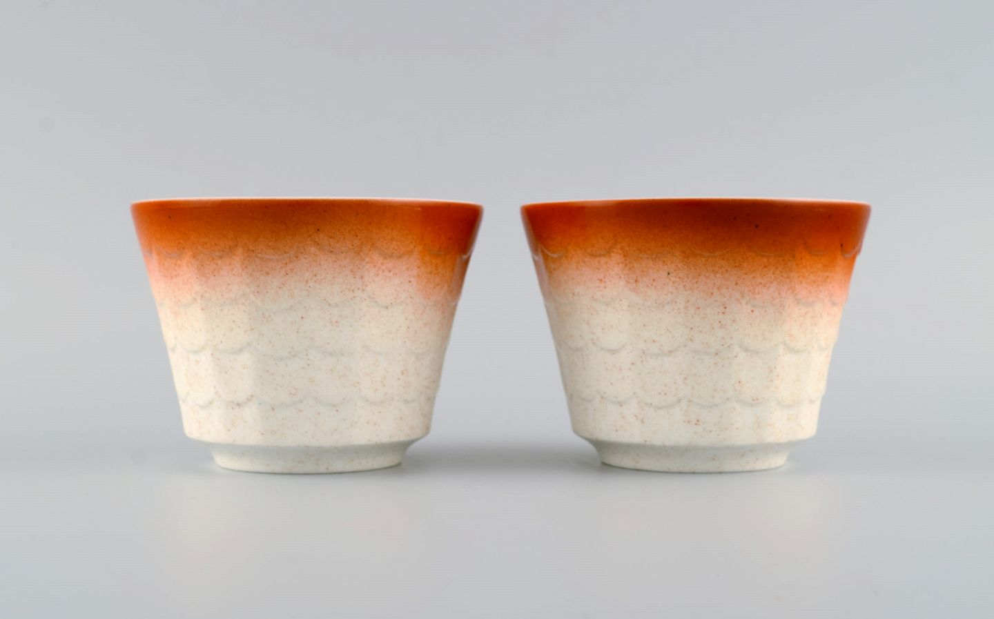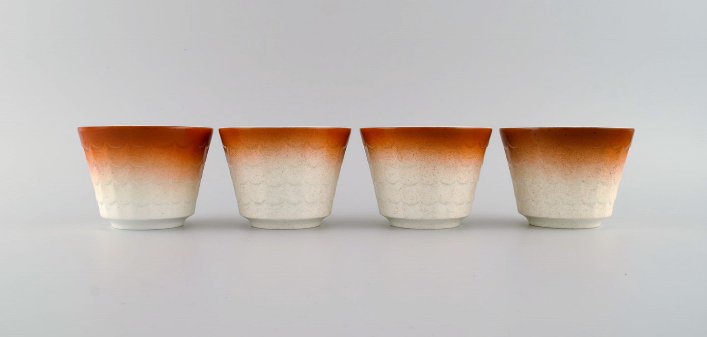 Wilhelm Kåge for Gustavsberg. Fire art deco urtepotter i glaseret porcelæn. Svensk design, 1960'erne.