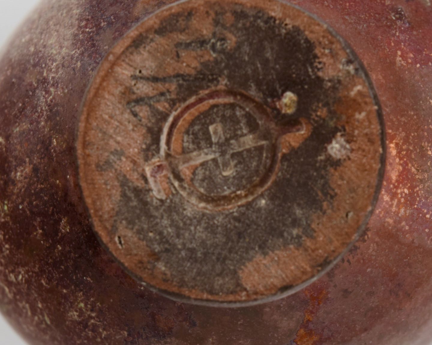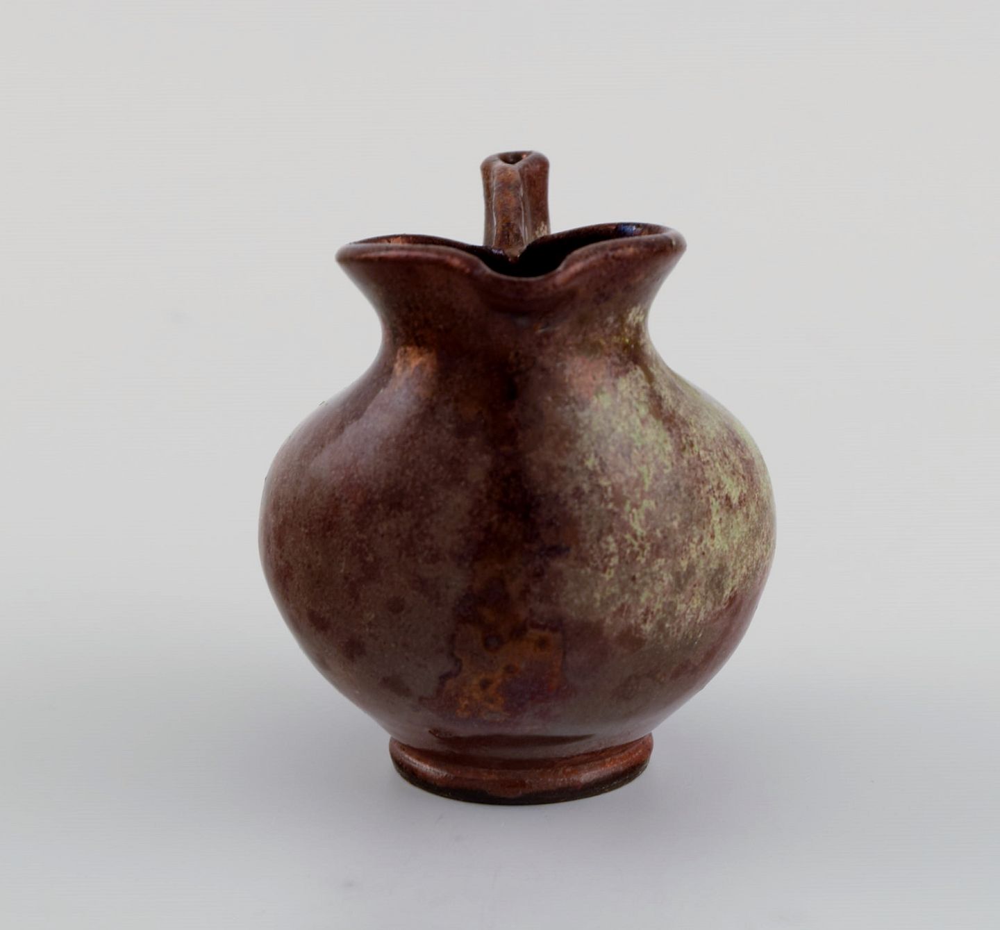 Europæisk studiokeramiker. Lille unika vase / kande i glaseret stentøj. Smuk lustreglasur. 1960/70'erne.
