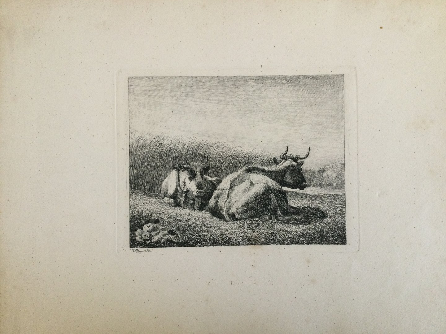 Radering af Johannes Vilhelm Zillen 1858 - To hvilende køer.