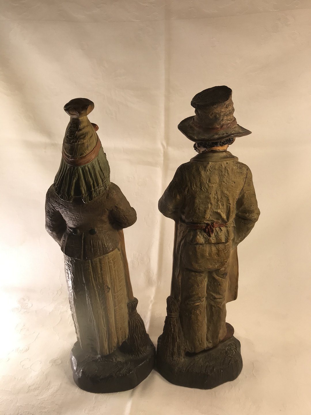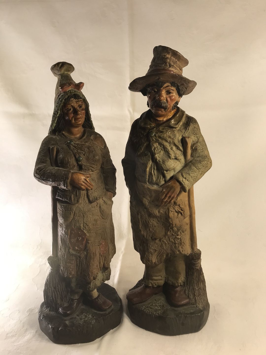 Two Terracotta Figures in the form of a poor man and wife, the last half of the 19th century. Height: 27 cm. The man's head is rep.