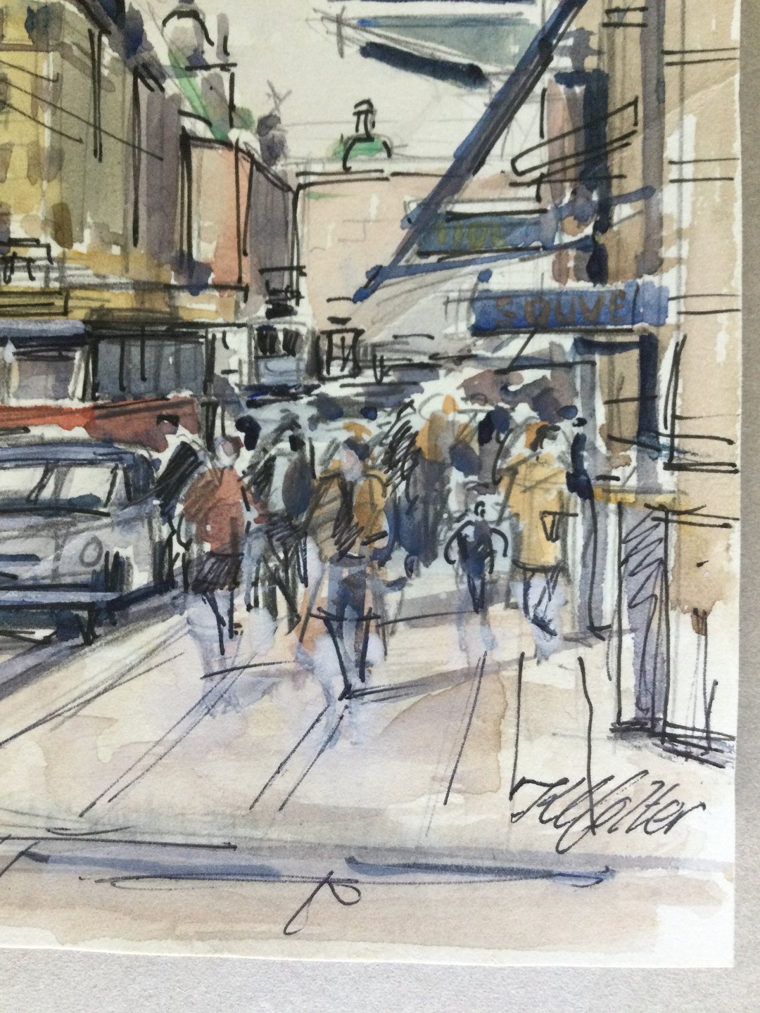 Akvarel af Kai Molter - Vasagatan i Stockholm.