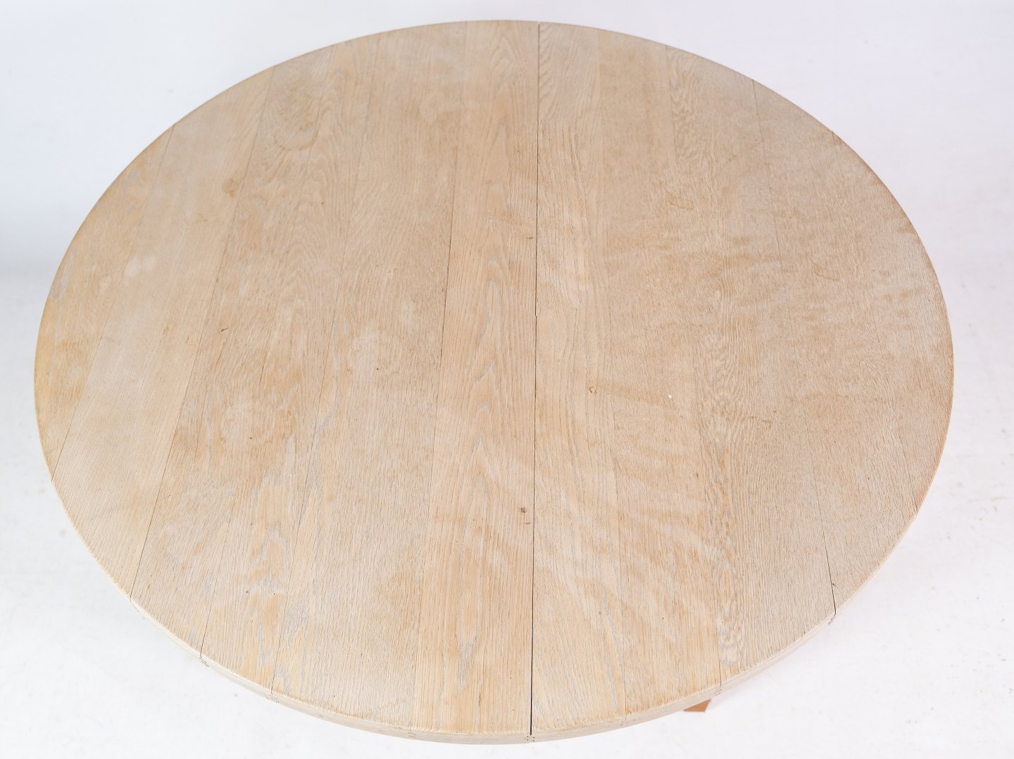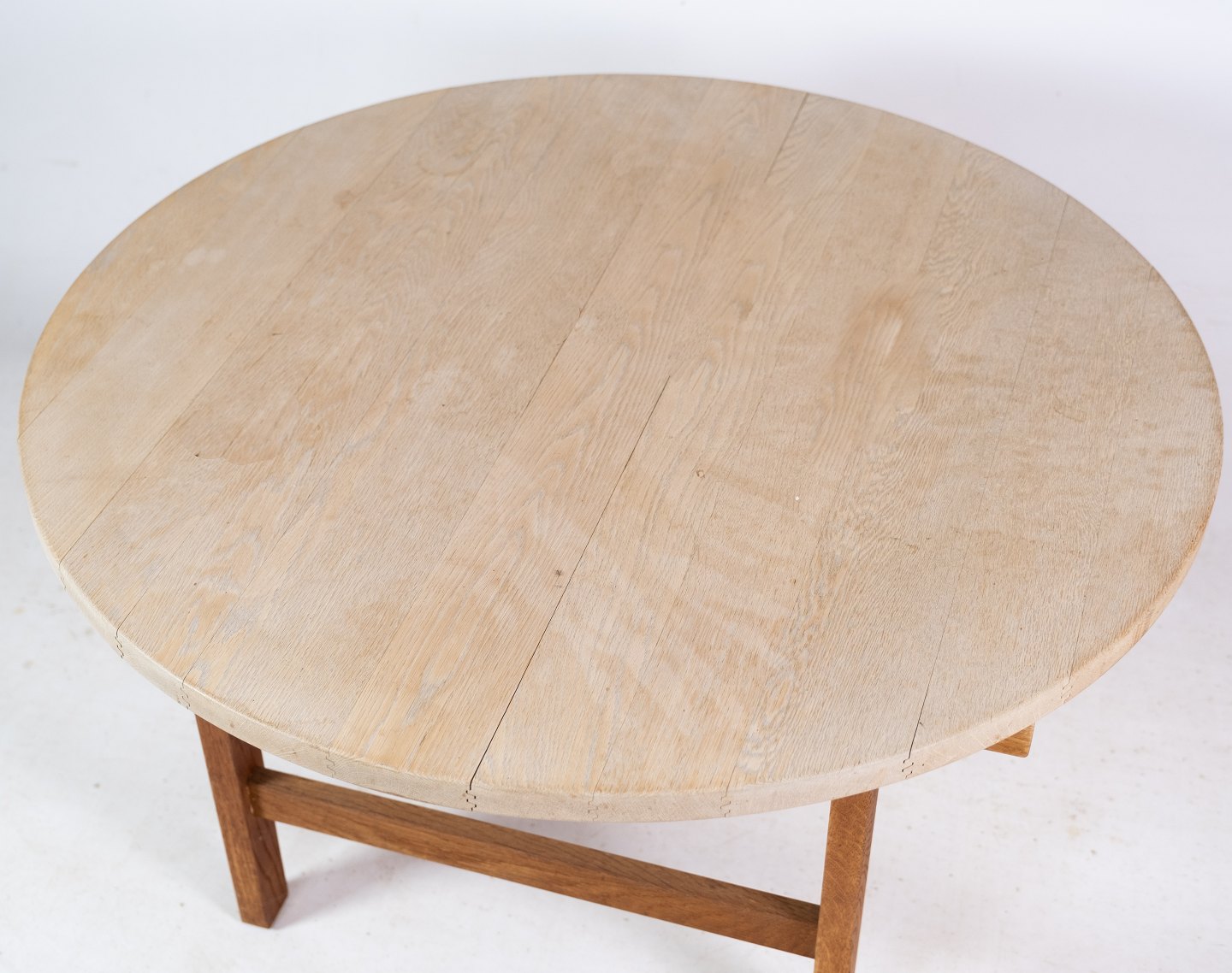 Rundt sofabord, designet af Hans J. Wegner (1914-2007) af massiv egetræ fremstillet hos PP Møbler. Bordet er sæbebehandlet men kan også olieres.