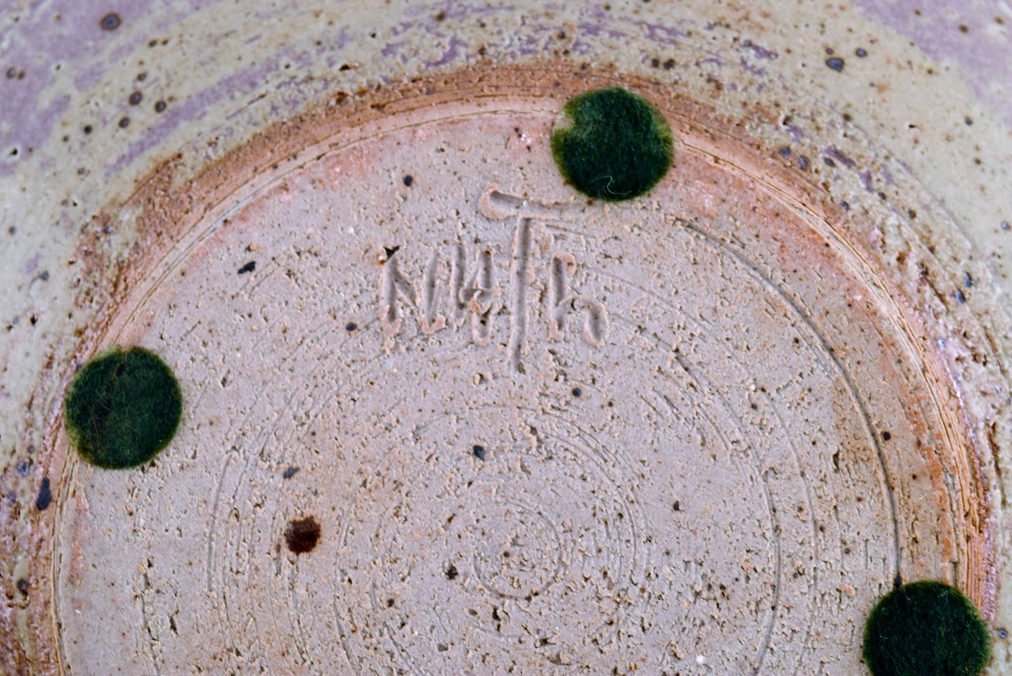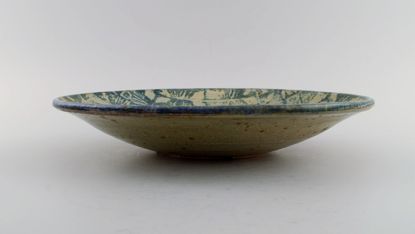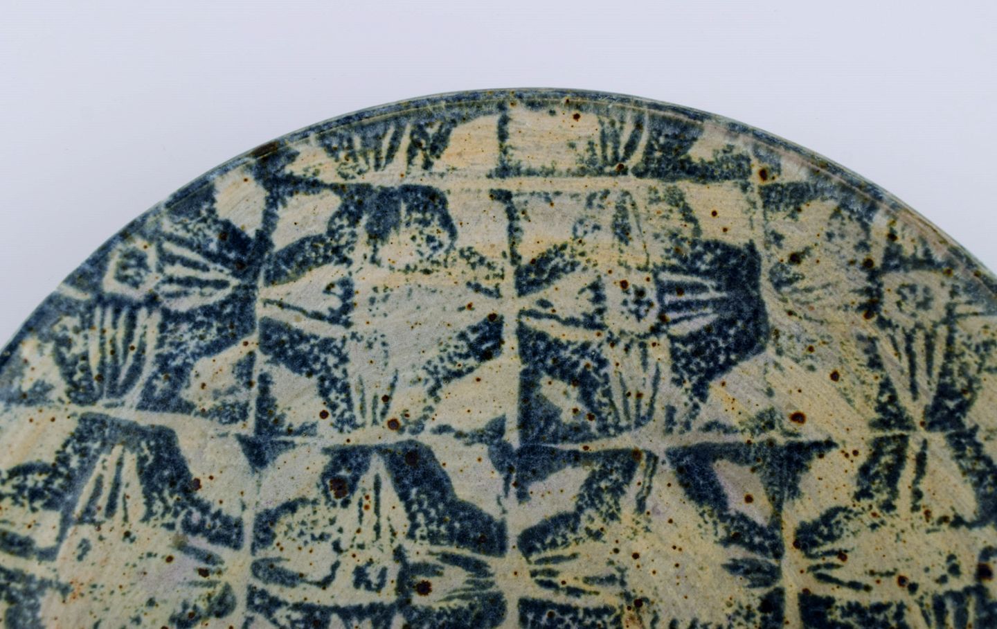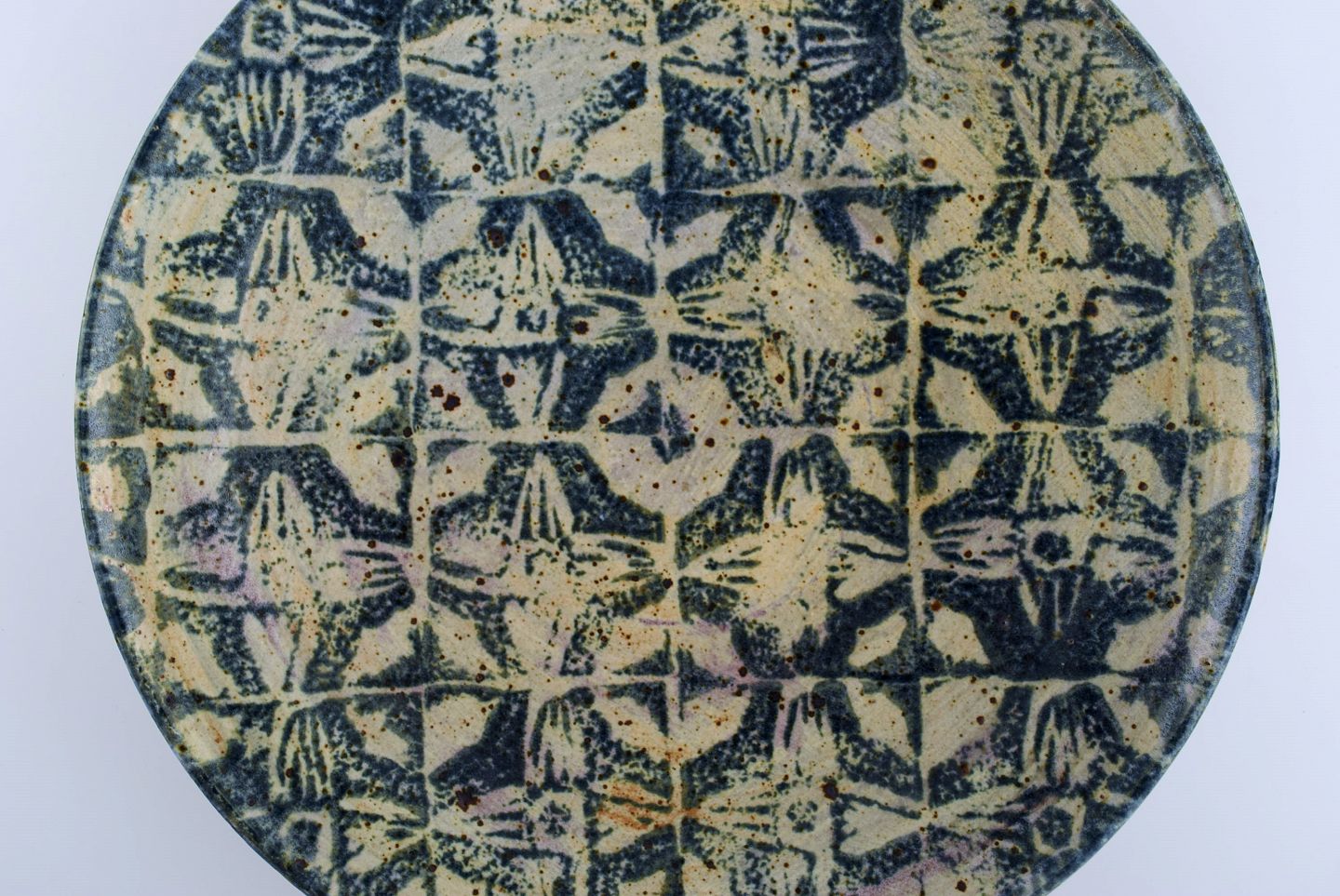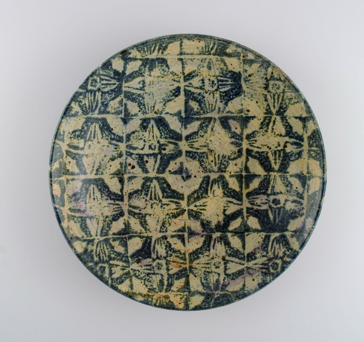 Europæisk studiokeramiker. Stor unika skål / fad i glaseret stentøj med mønstret dekoration. 1980'erne.
