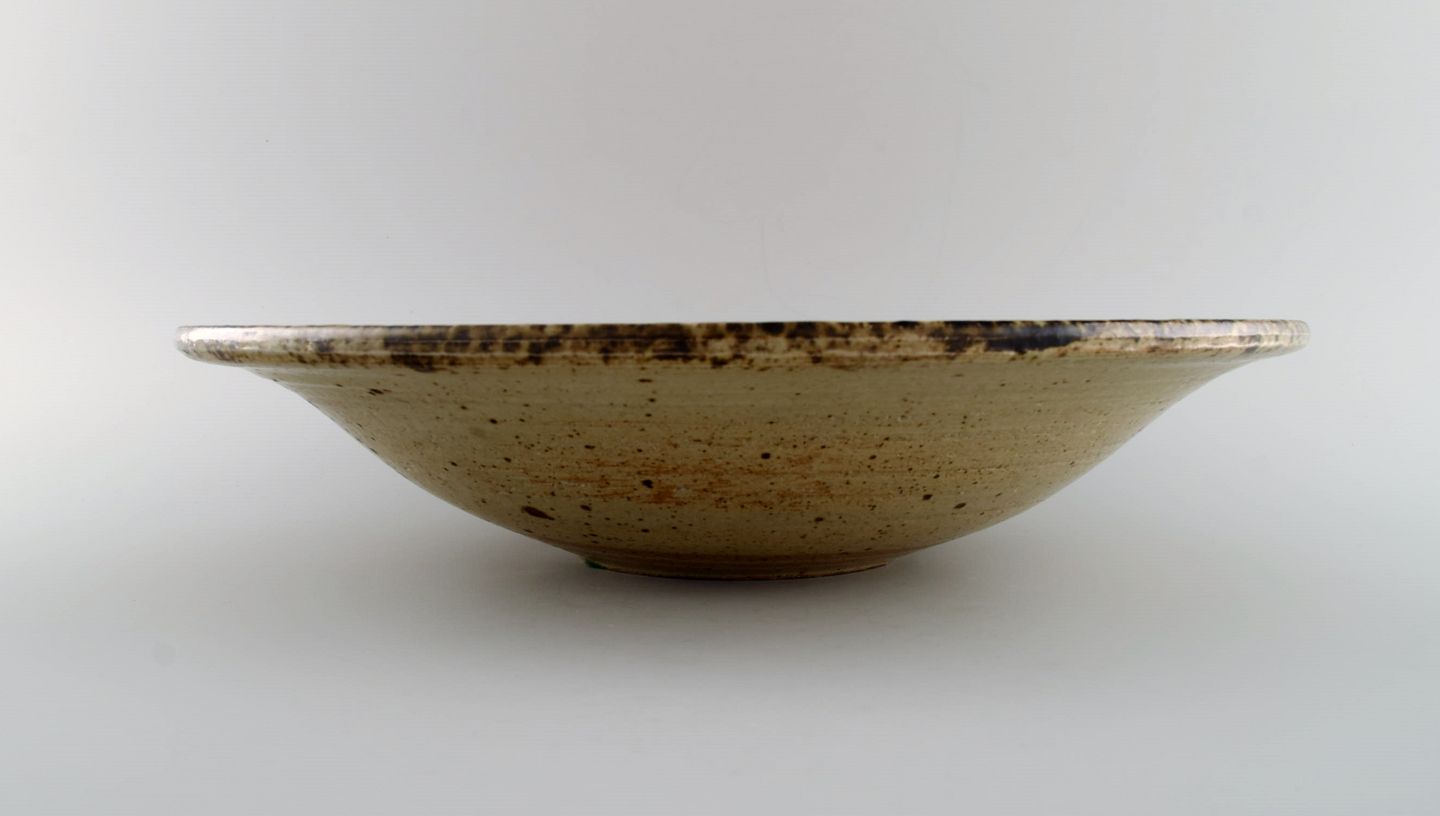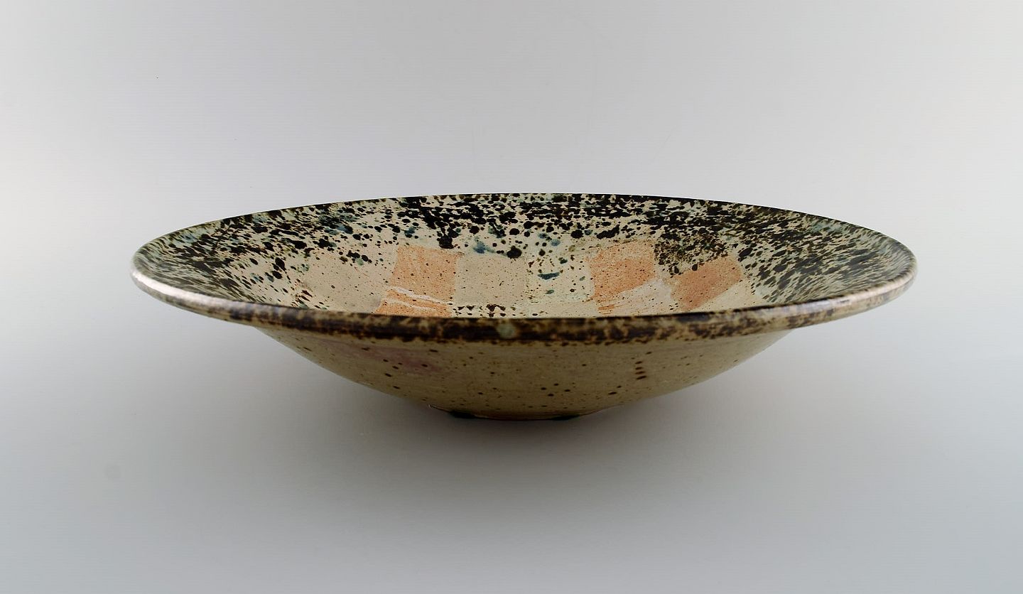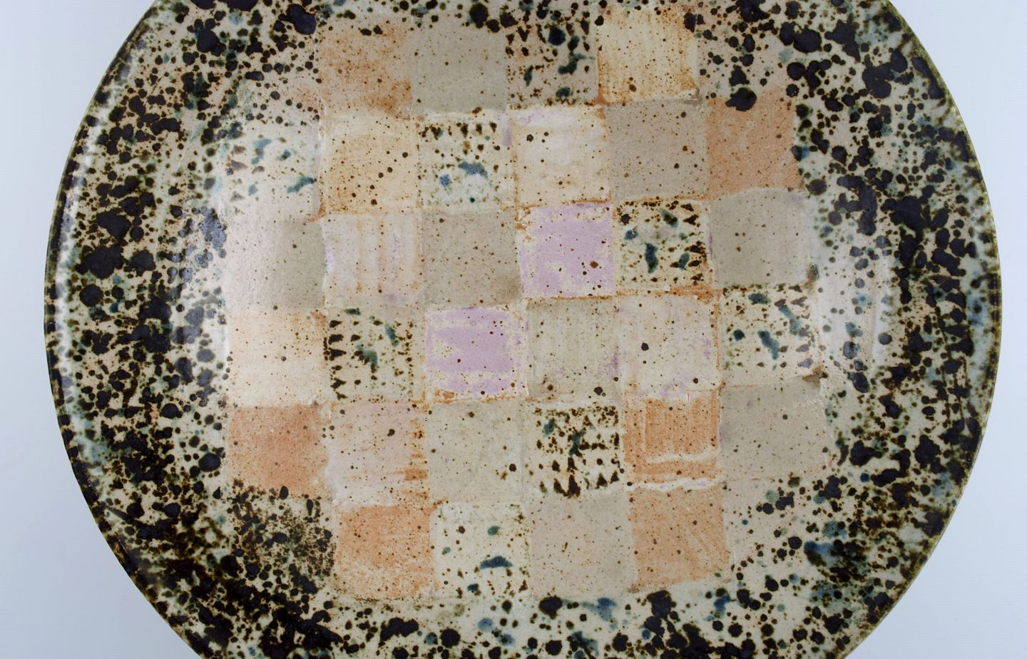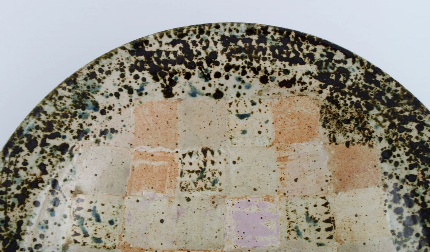Europæisk studiokeramiker. Stor unika skål i glaseret stentøj med ternet mønster. Dateret 1988.