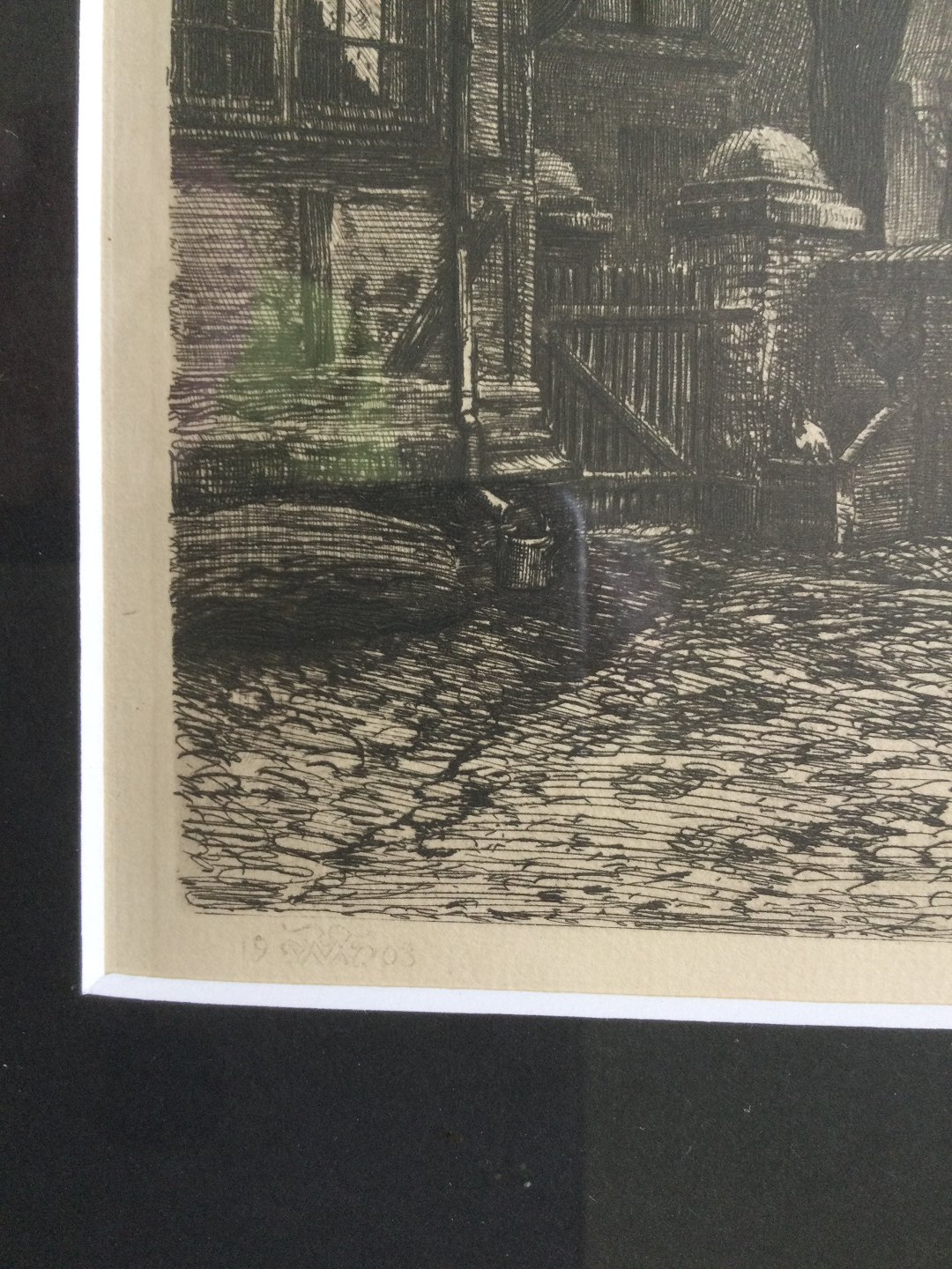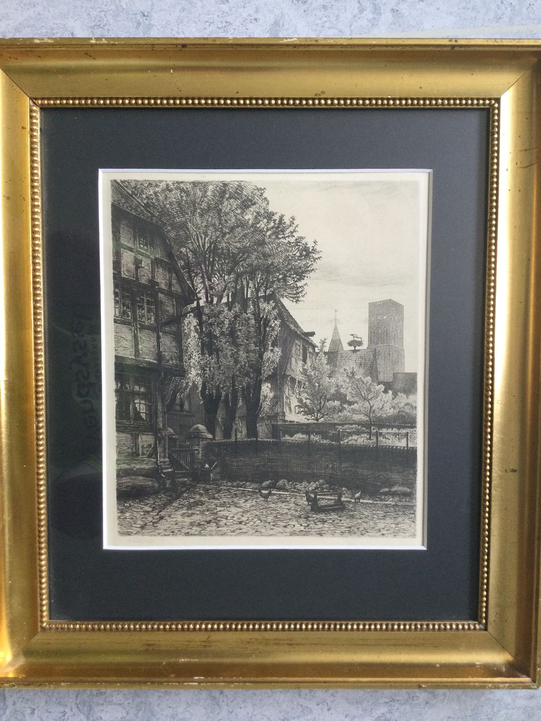 Radering af Peter Tom-Petersen - Apotekets Gård i Ribe 1903.