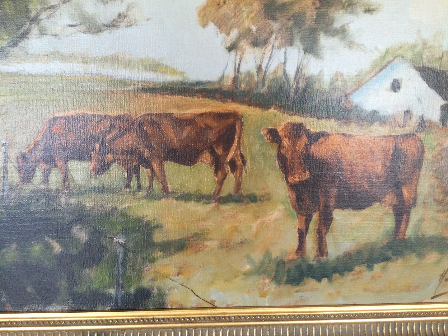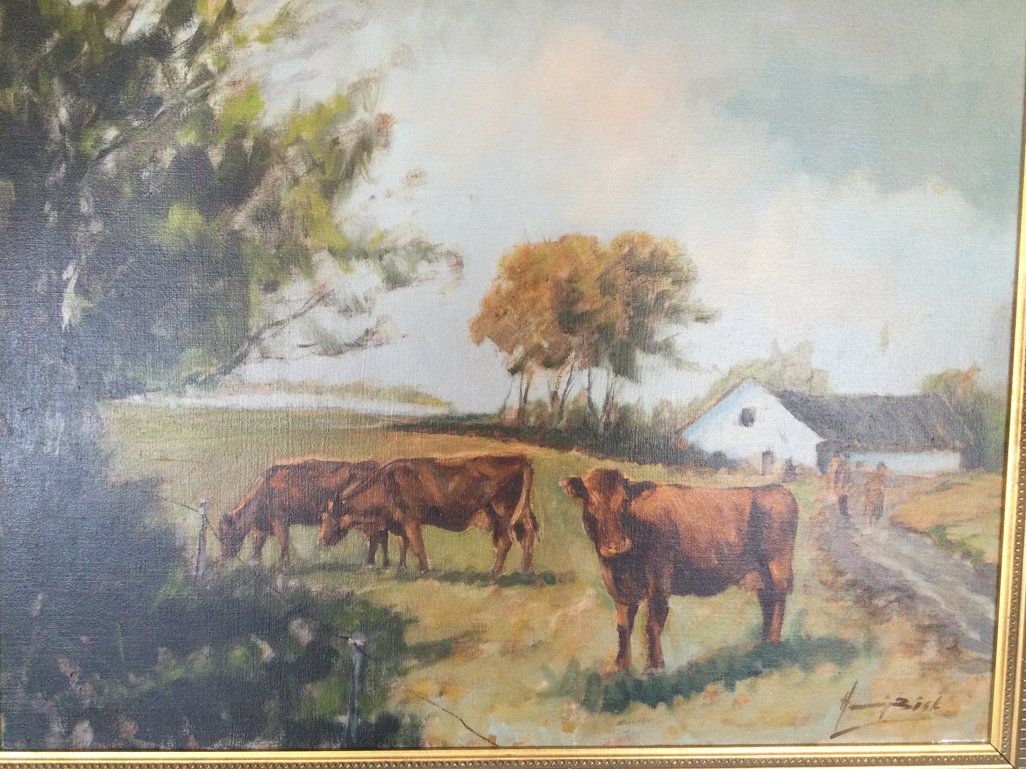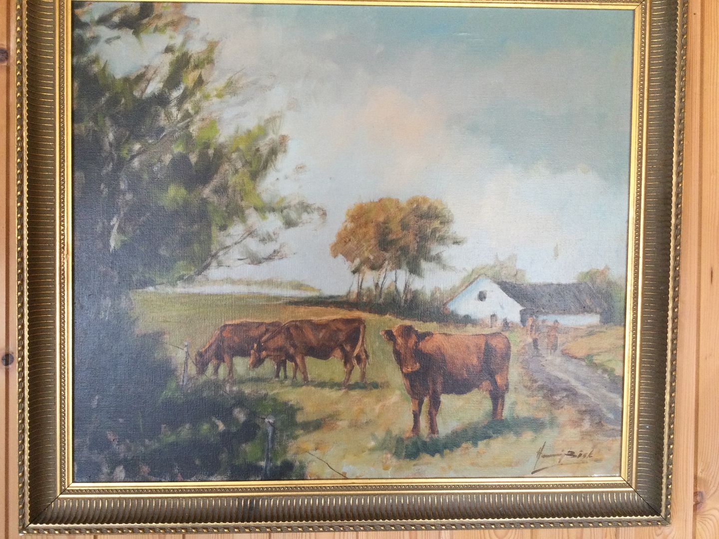 Maleri af Henning Busk - Gårdparti med køer.