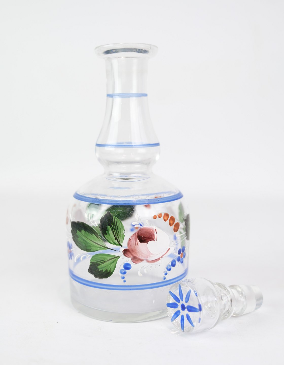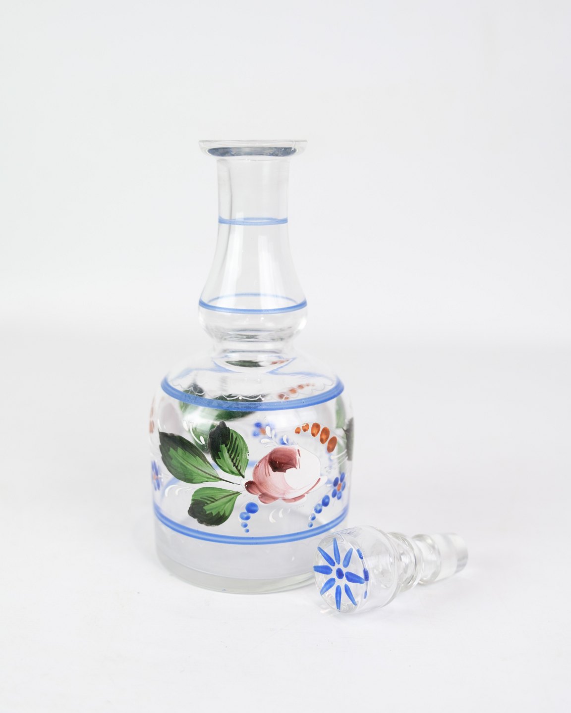 En Karaffel med håndmalet blomster dekoration fra omkring år 1930'erne