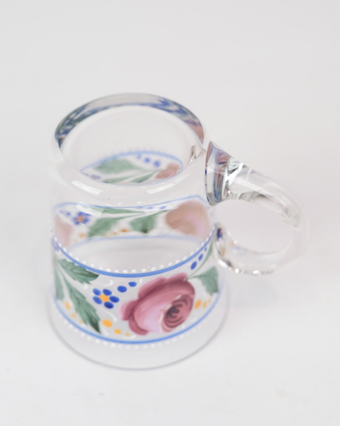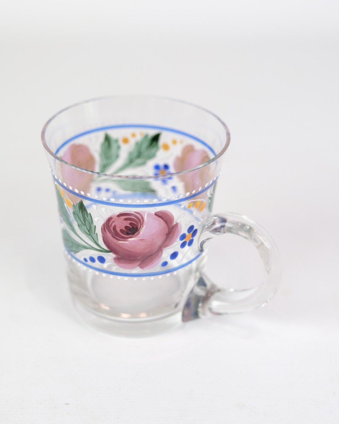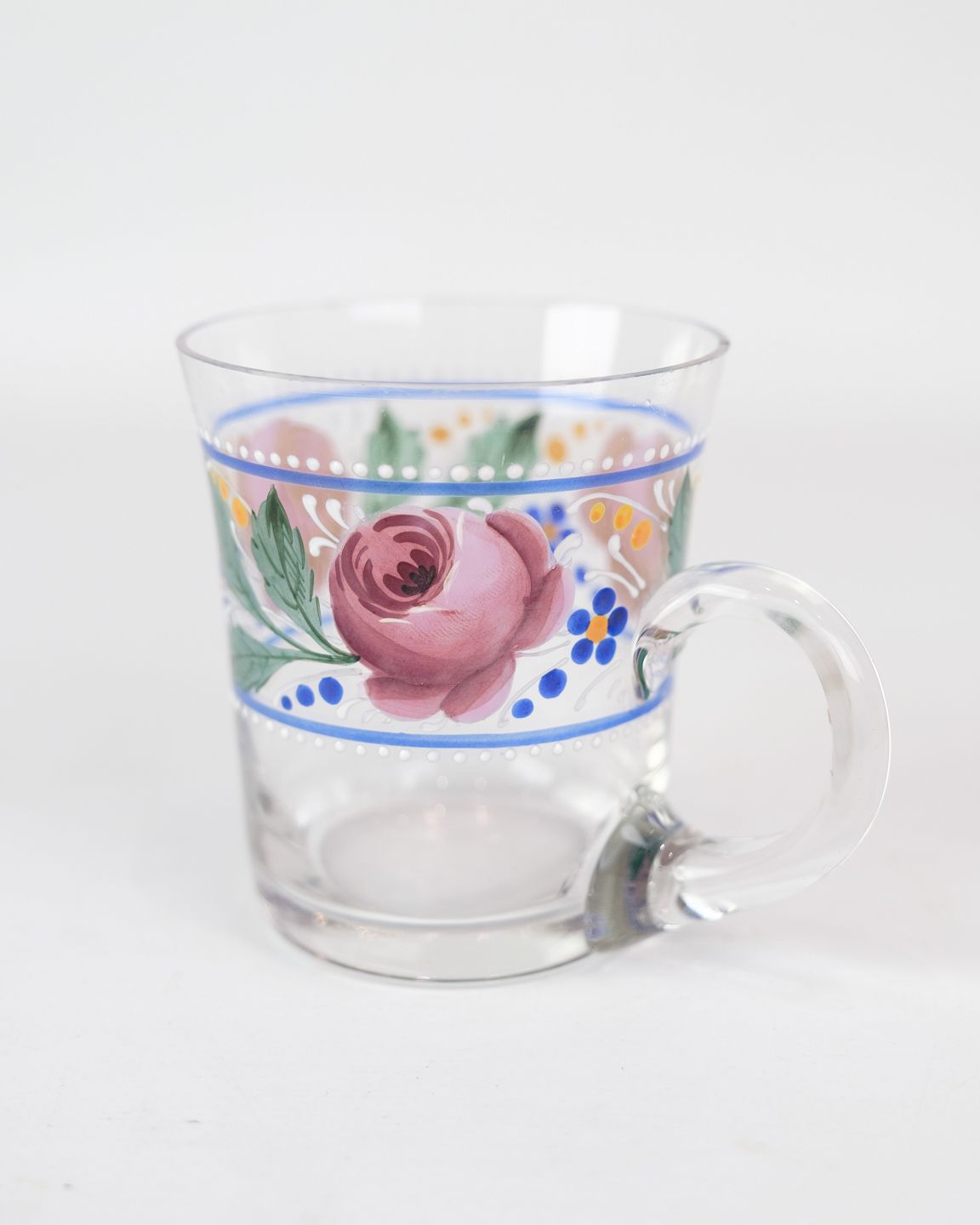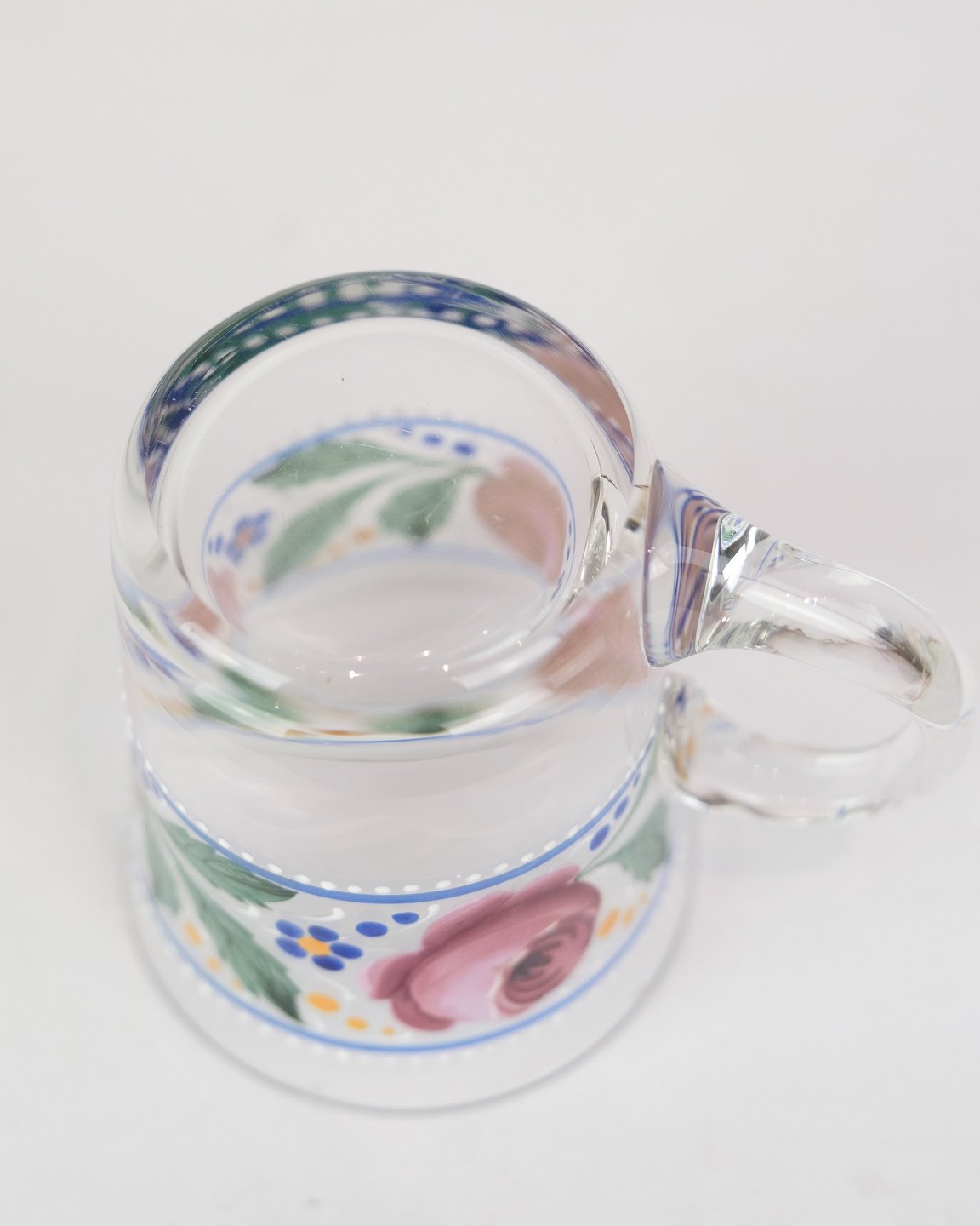 Drikke glas med håndmalet blomster dekoration fra omkring år 1930'erne.