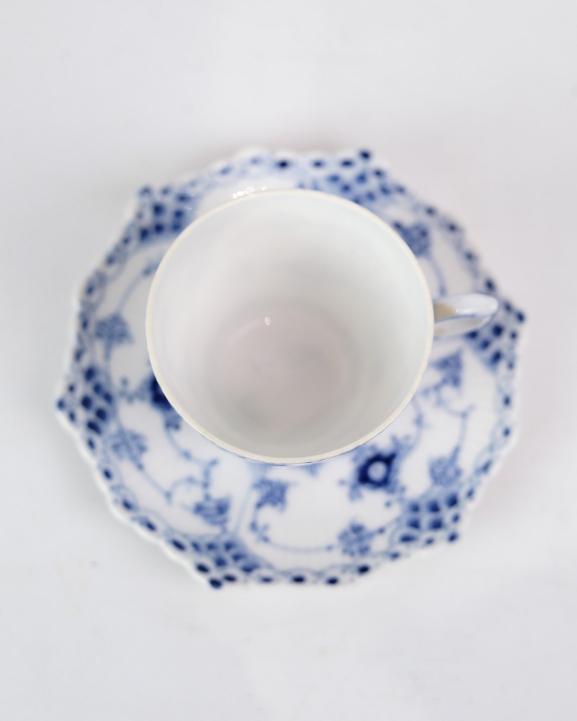 Kgl. Royal Copenhagen musselmalet helblonde espresso kop samt underkop, nr.: 1/1038