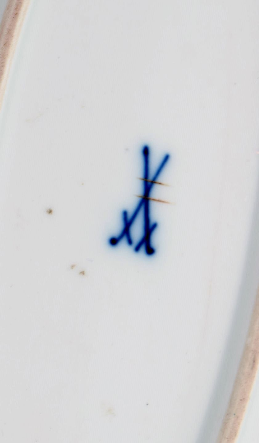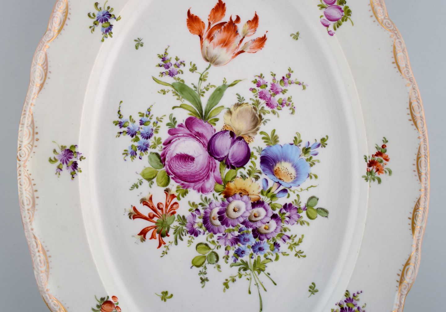 Stort Meissen serveringsfad i porcelæn med håndmalede blomster og gulddekoration. Sent 1800-tallet.