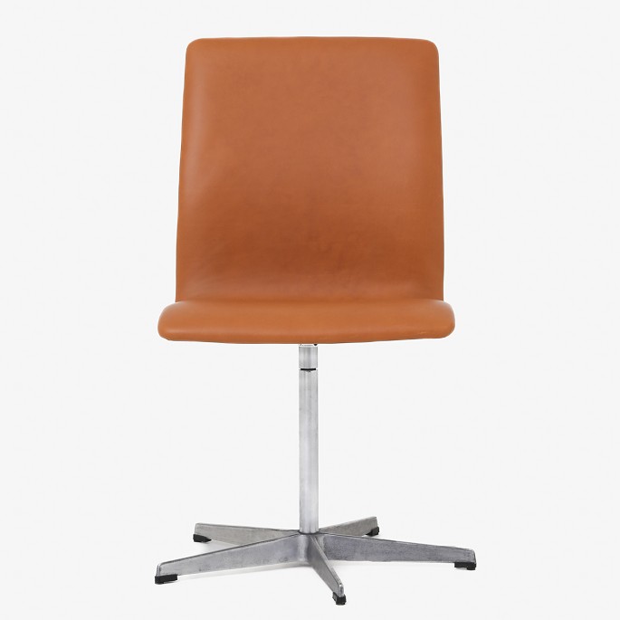 AJ 3171 - 'Oxford'-stol på fod af aluminium og nyt betræk i Envy-anilinlæder (farve: Cognac). KLASSIK tilbyder stolen i læder efter eget valg. Kontakt os venligst for mere information.