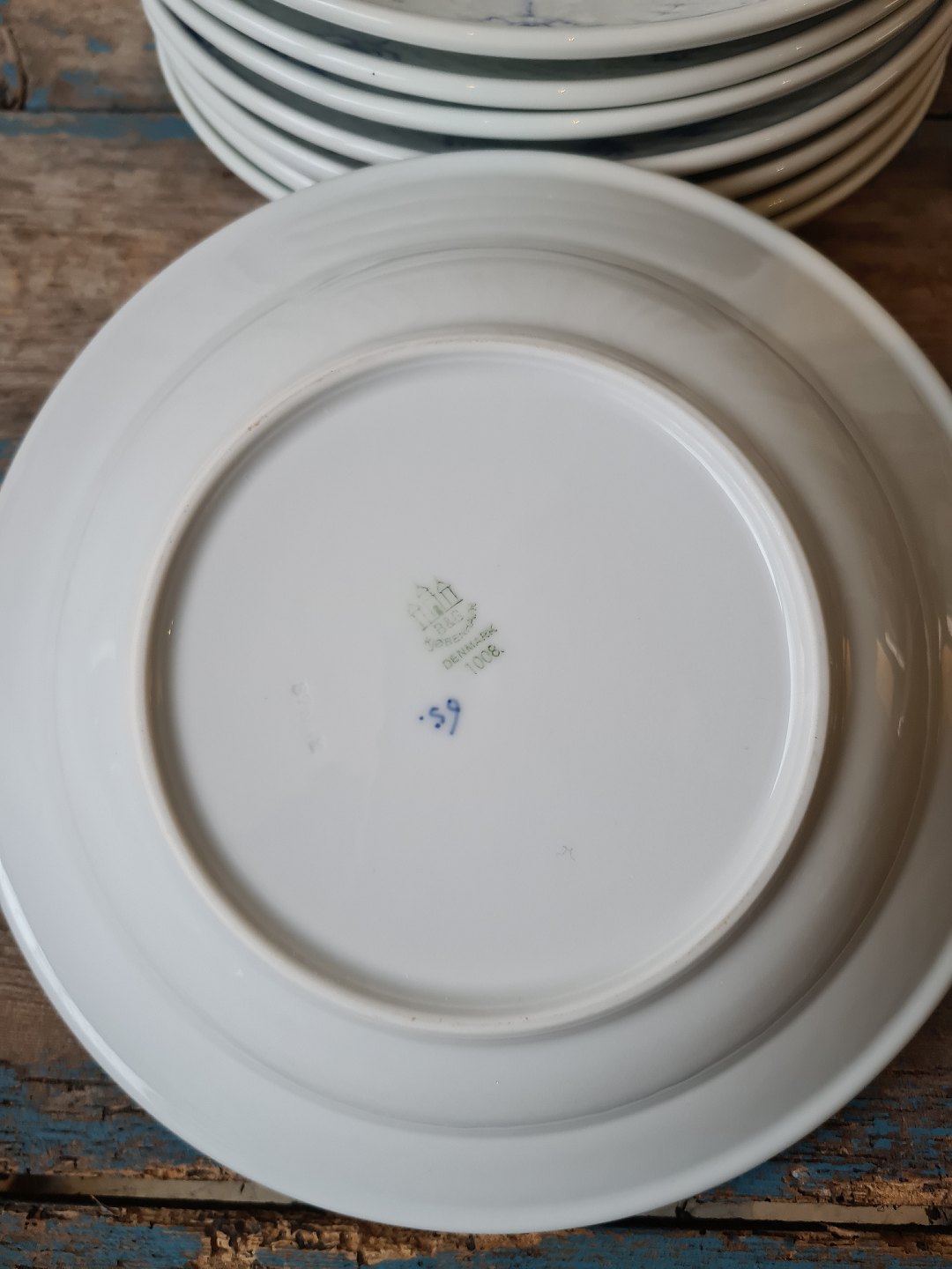 B&G Blåmalet Hotelporcelæn med logo stor dybtallerken no. 1008