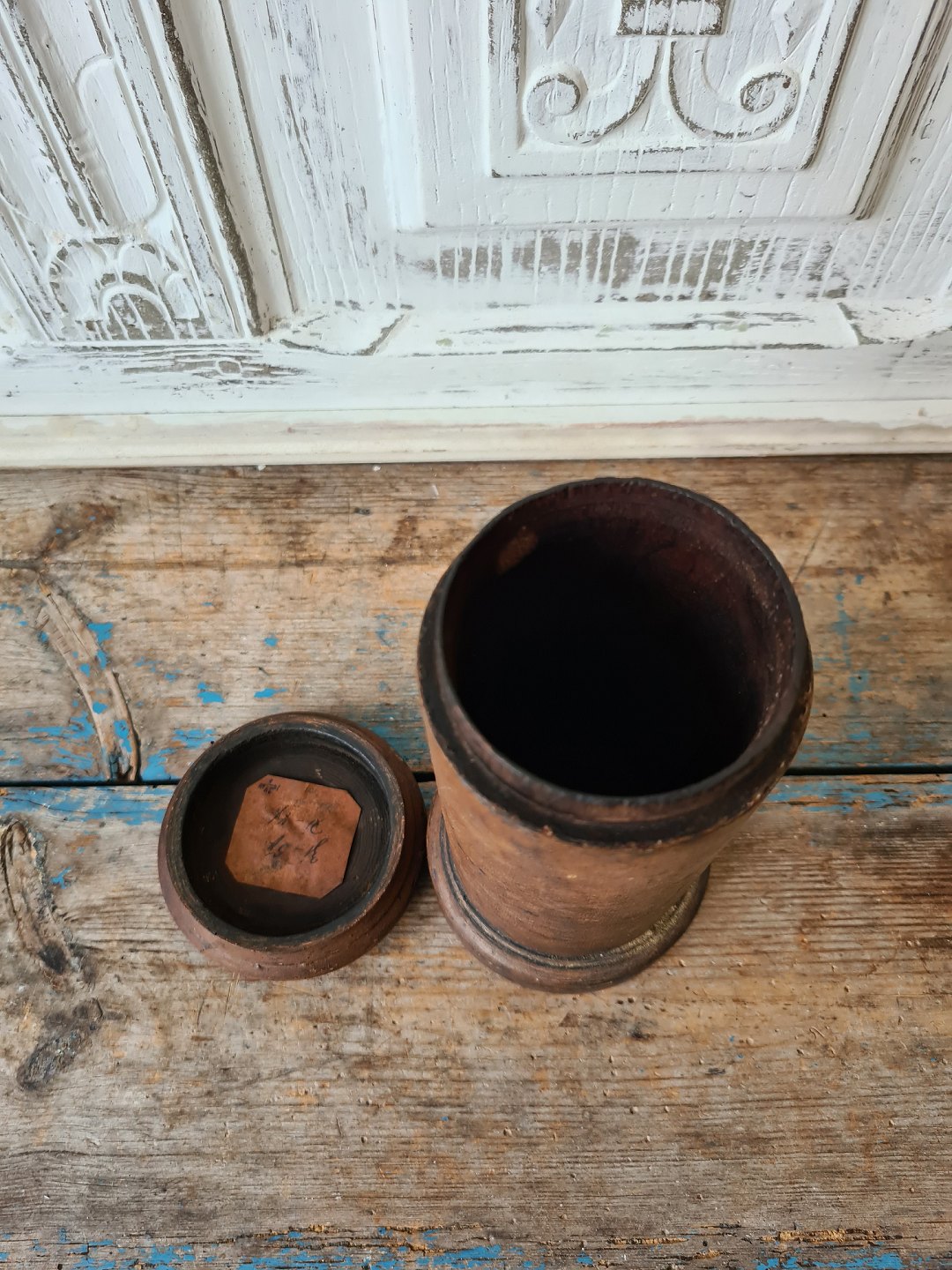 Gammel apotekerkrukke i træ