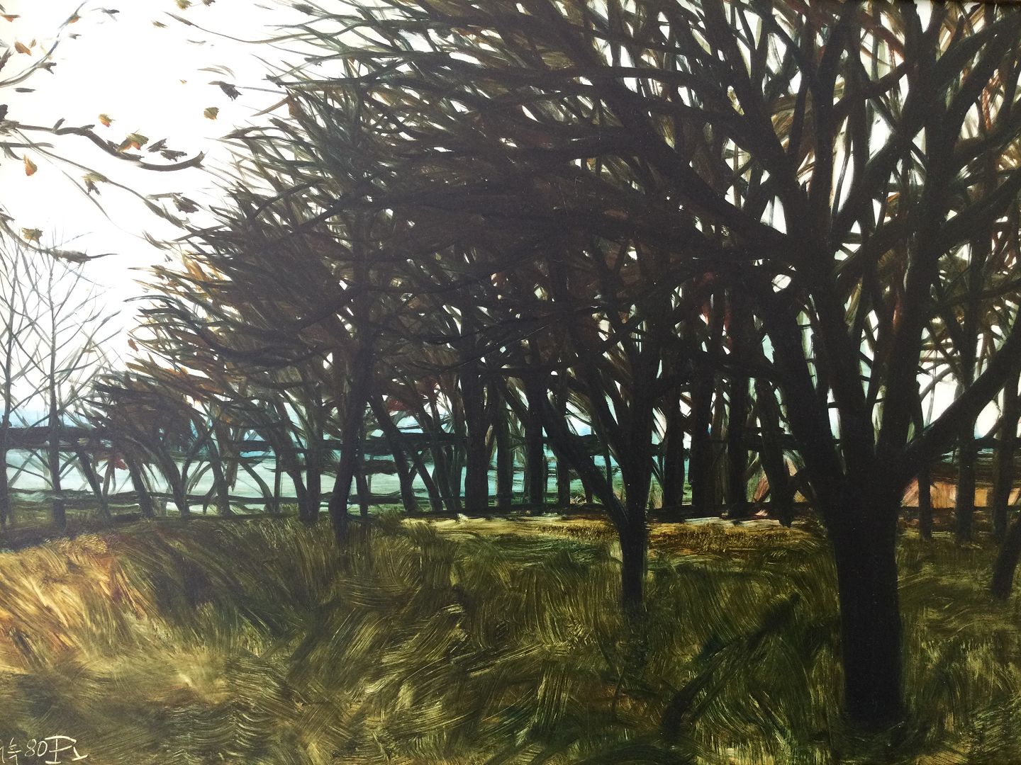 Maleri af Nils Ryberg 1980 - Æbleplantage.