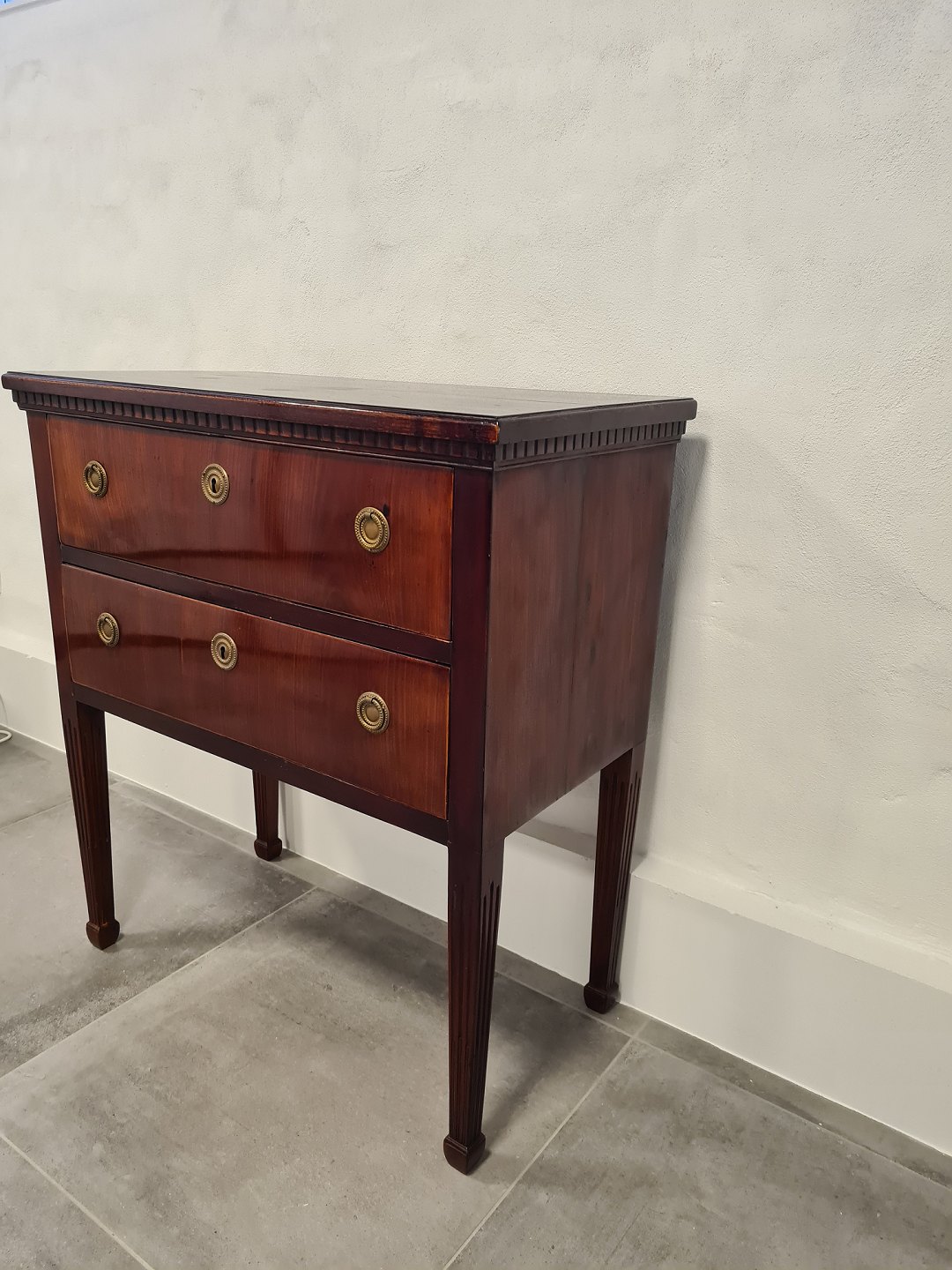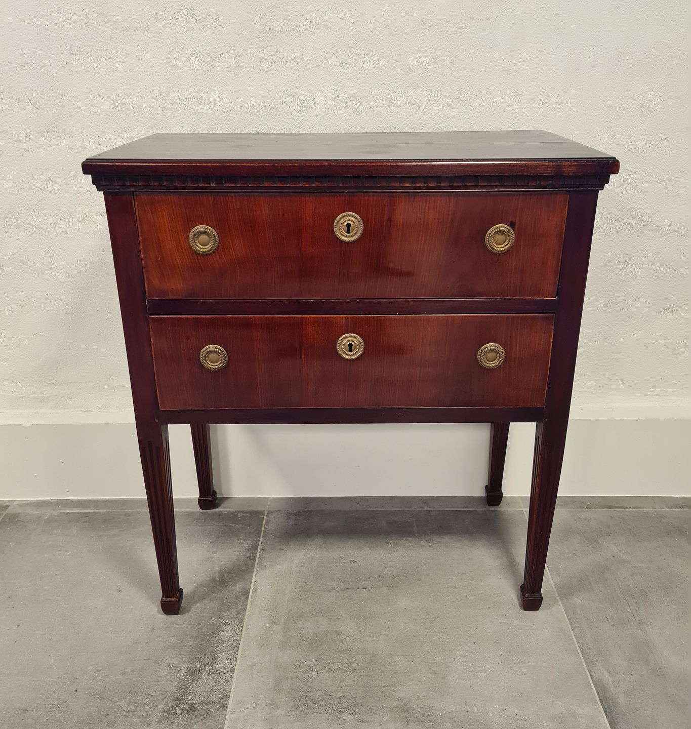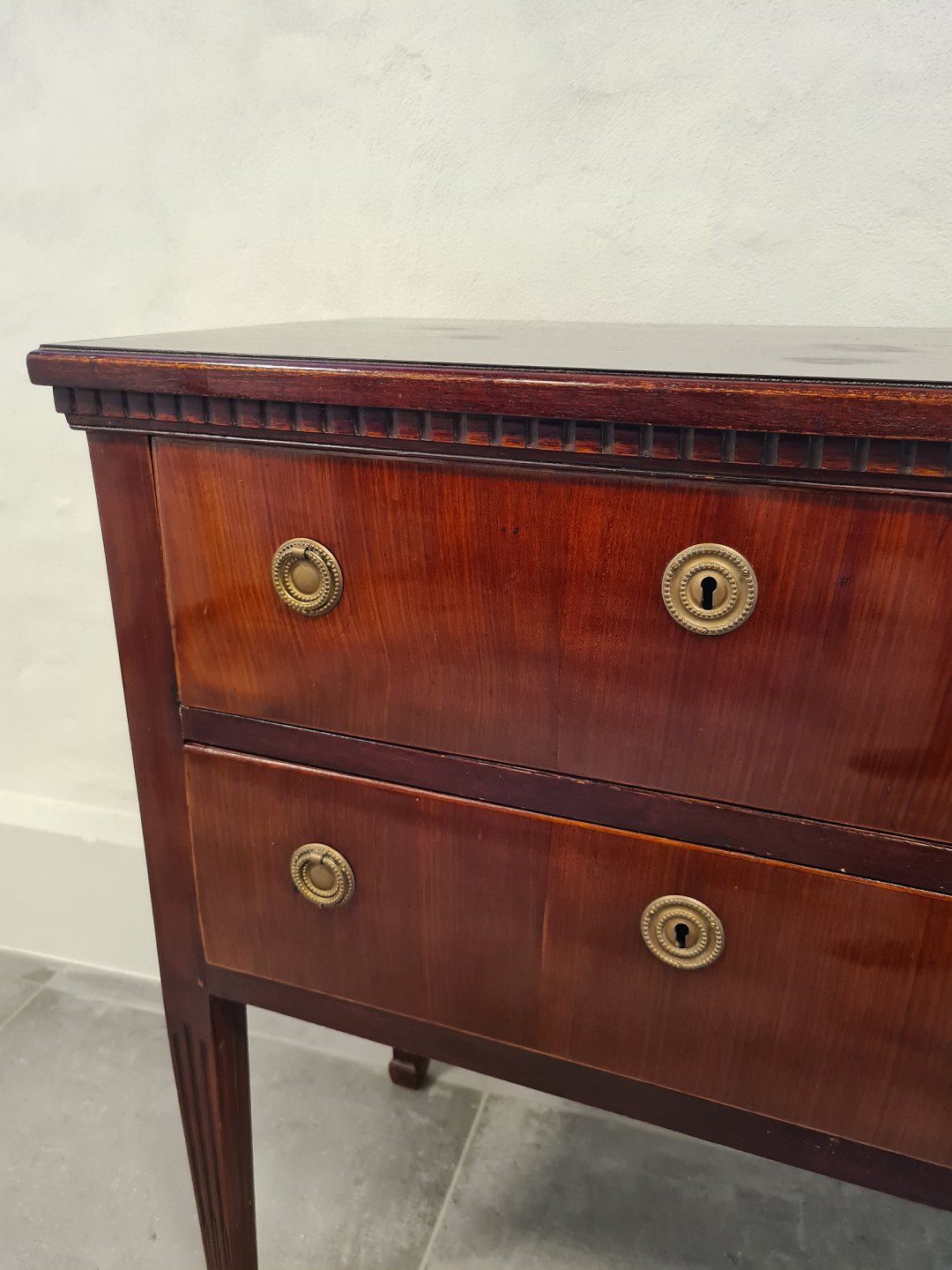 1800tals lille mahogni kommode i Louis XVI stil