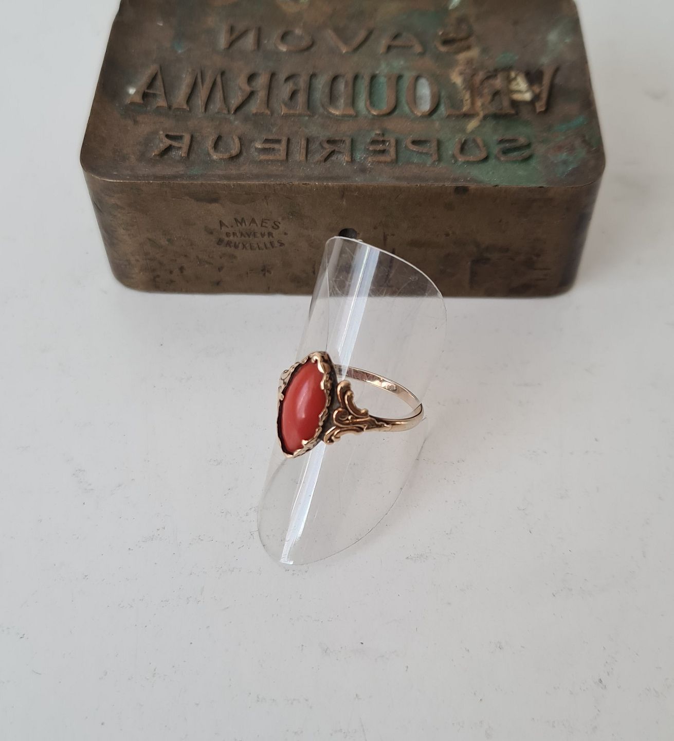Vintage ring i 14 kt guld med koral