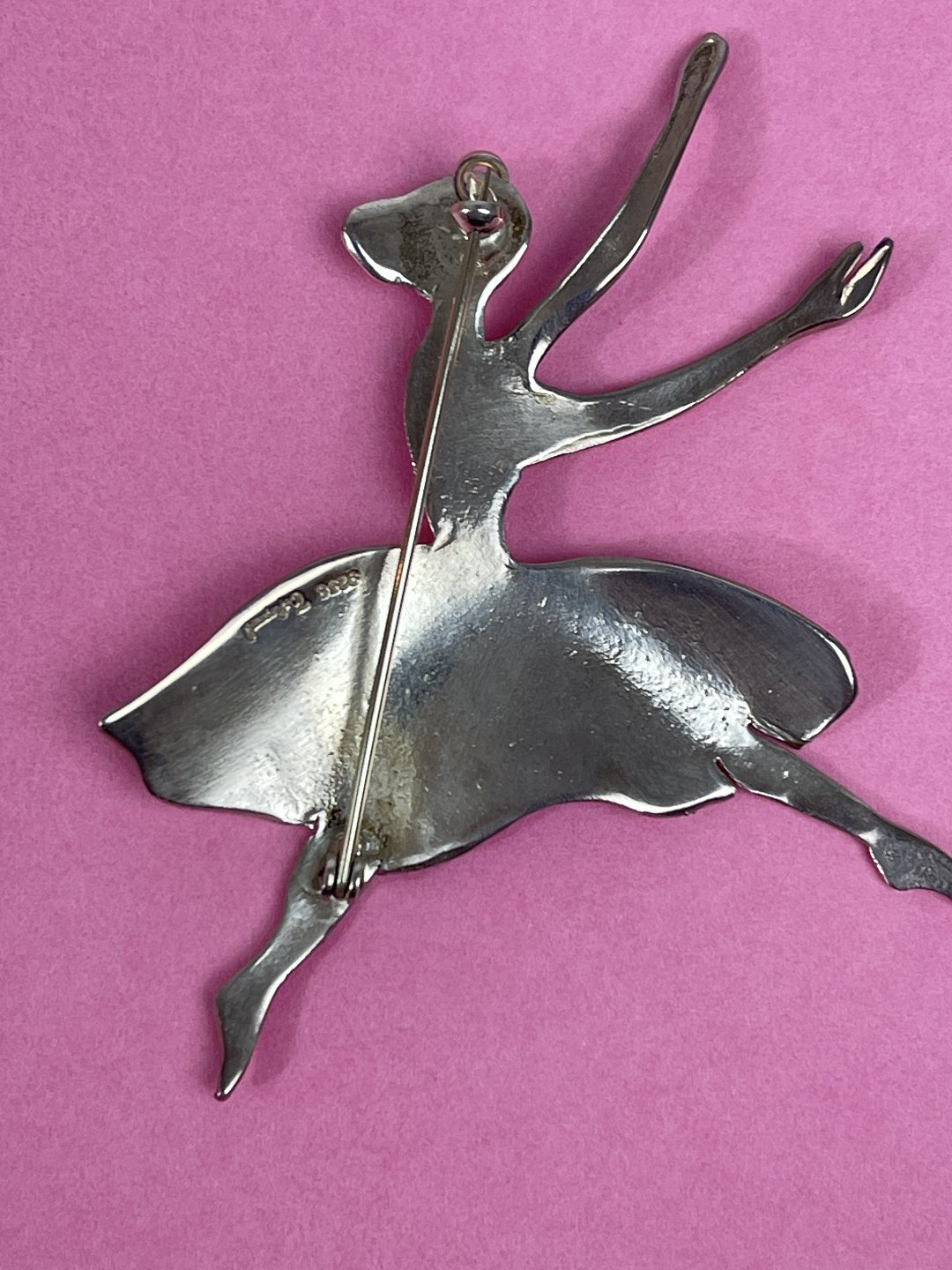 Brooch in 925 sterling silver with ballet dancer from Toftegaard Design. 14 grams. Defective lock.