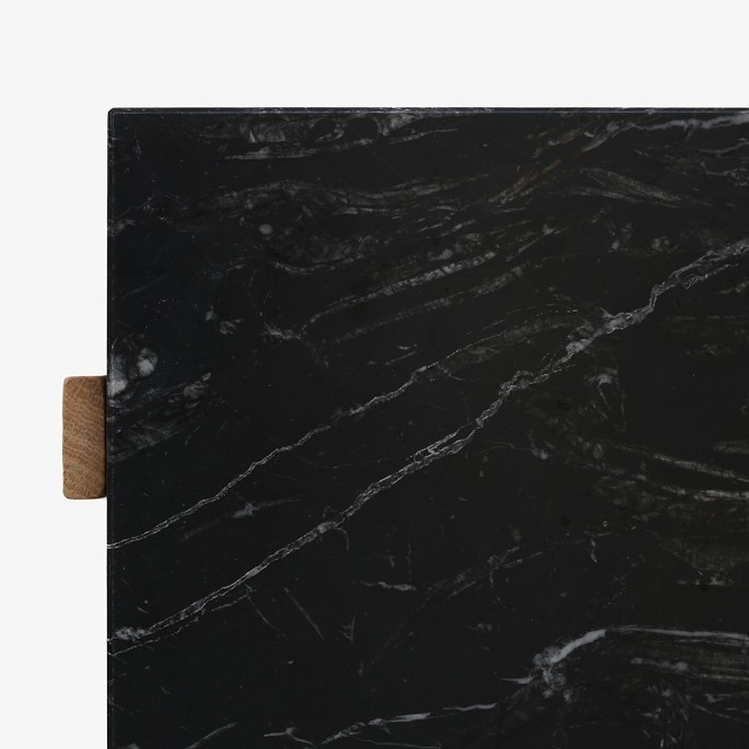 'Studio' kvadratisk sofabord i massiv, olieret stel af eg med sort marmor.