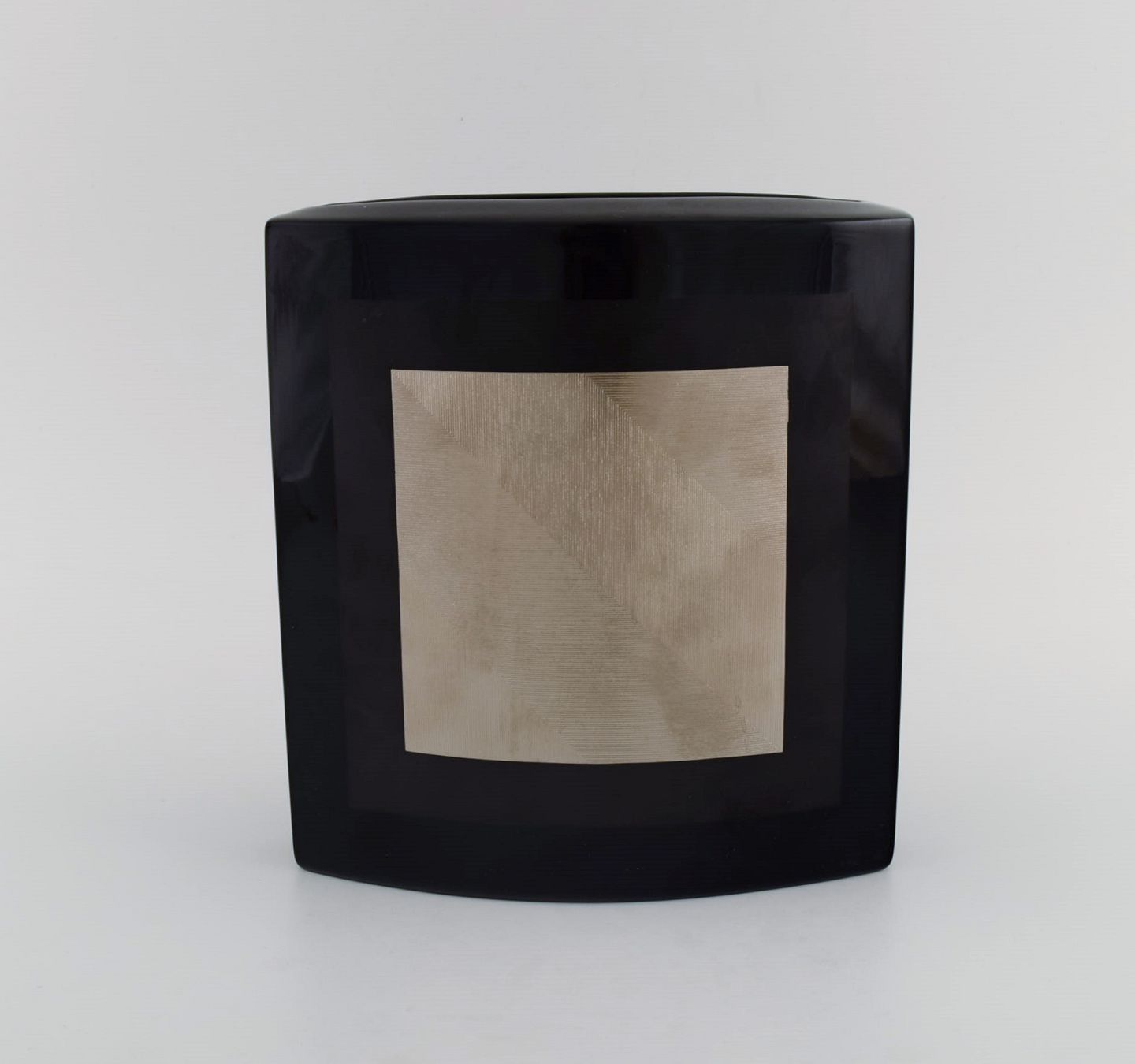 H. Dresler for Rosenthal. Stor vase i håndmalet porcelæn med sølvdekoration. 1980'erne.