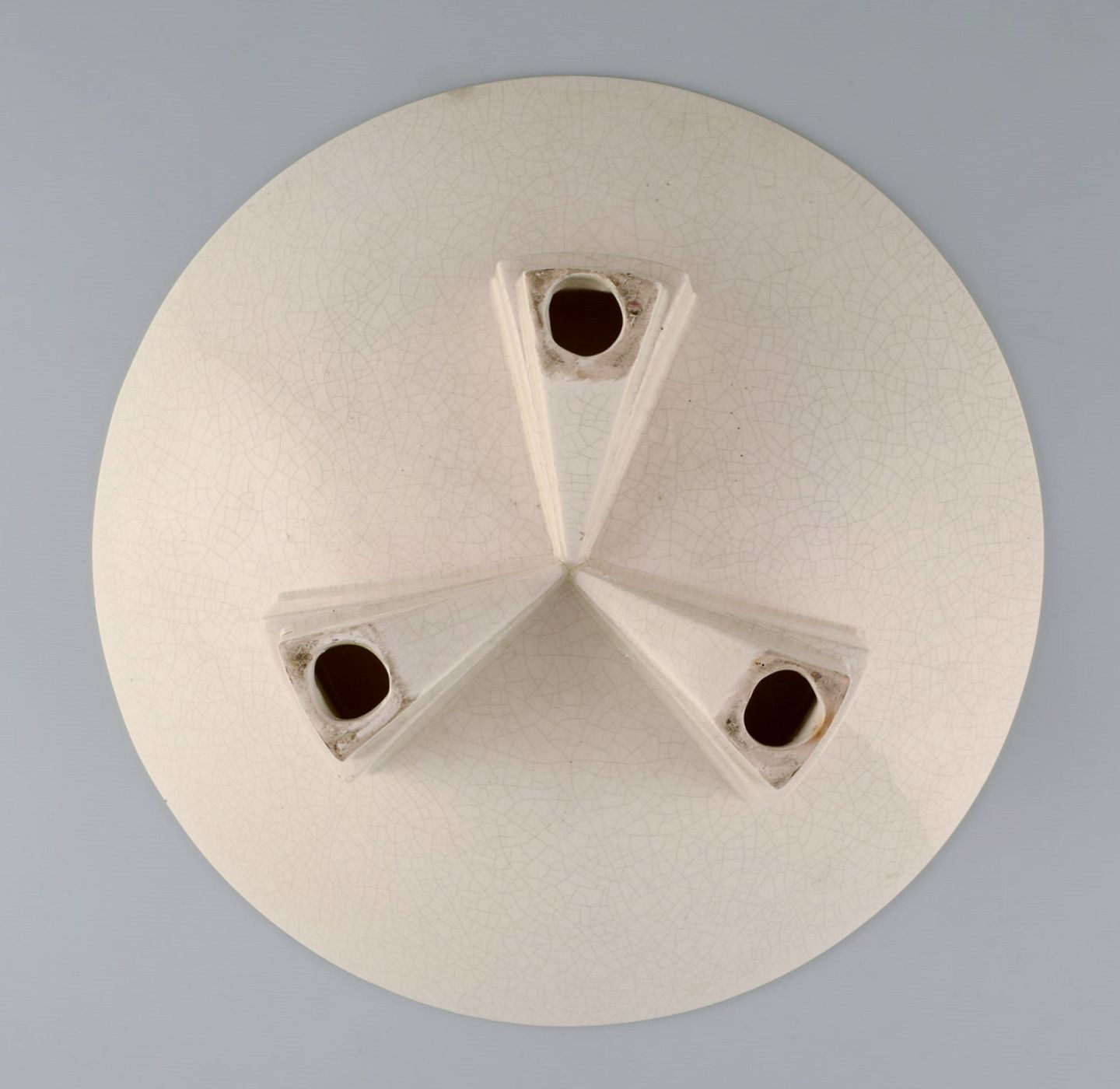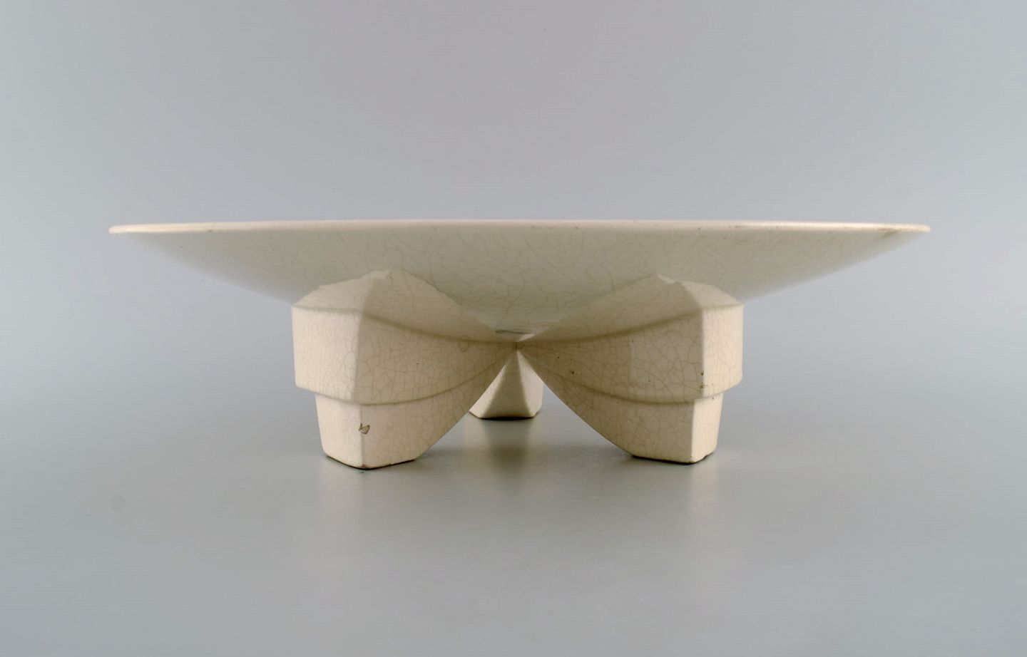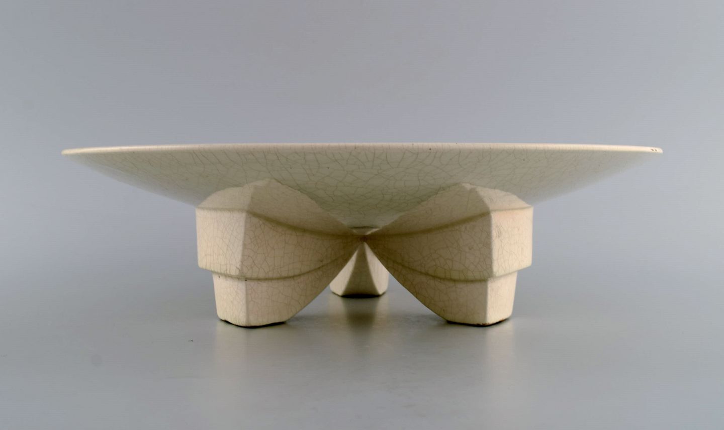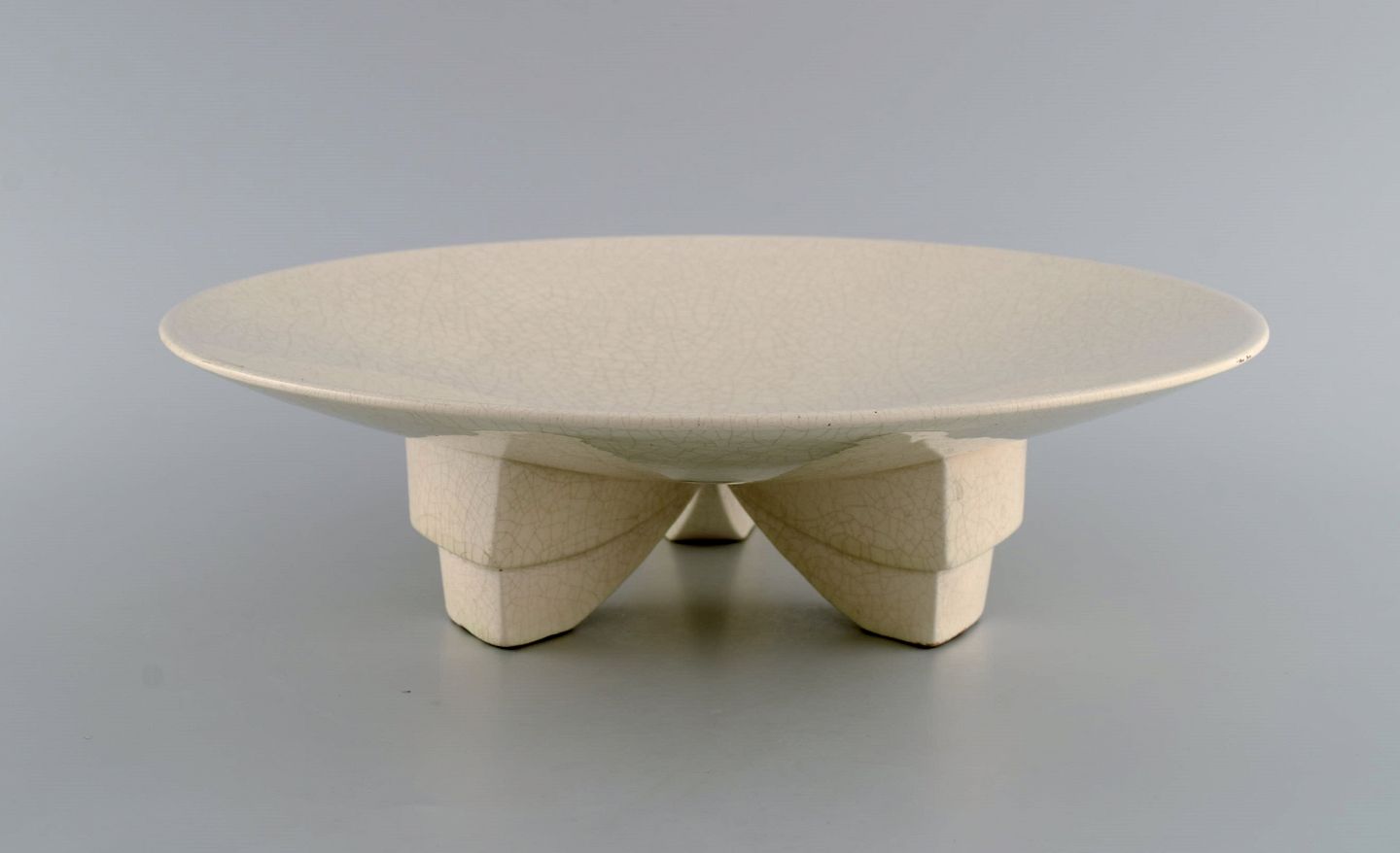 Longwy, Frankrig. Art deco skål i glaseret stentøj på trefod. Krakeleret design. 1940'erne.
