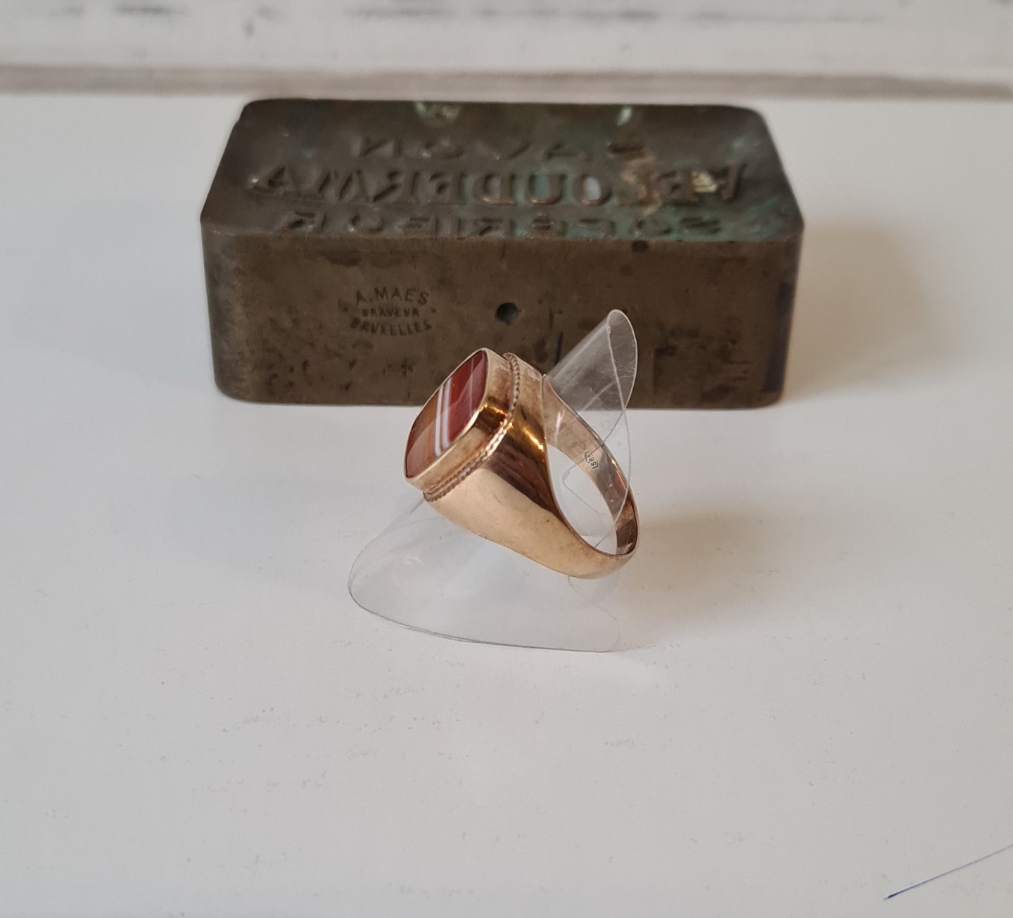 Vintage herrering i 14 kt guld med bånd agat